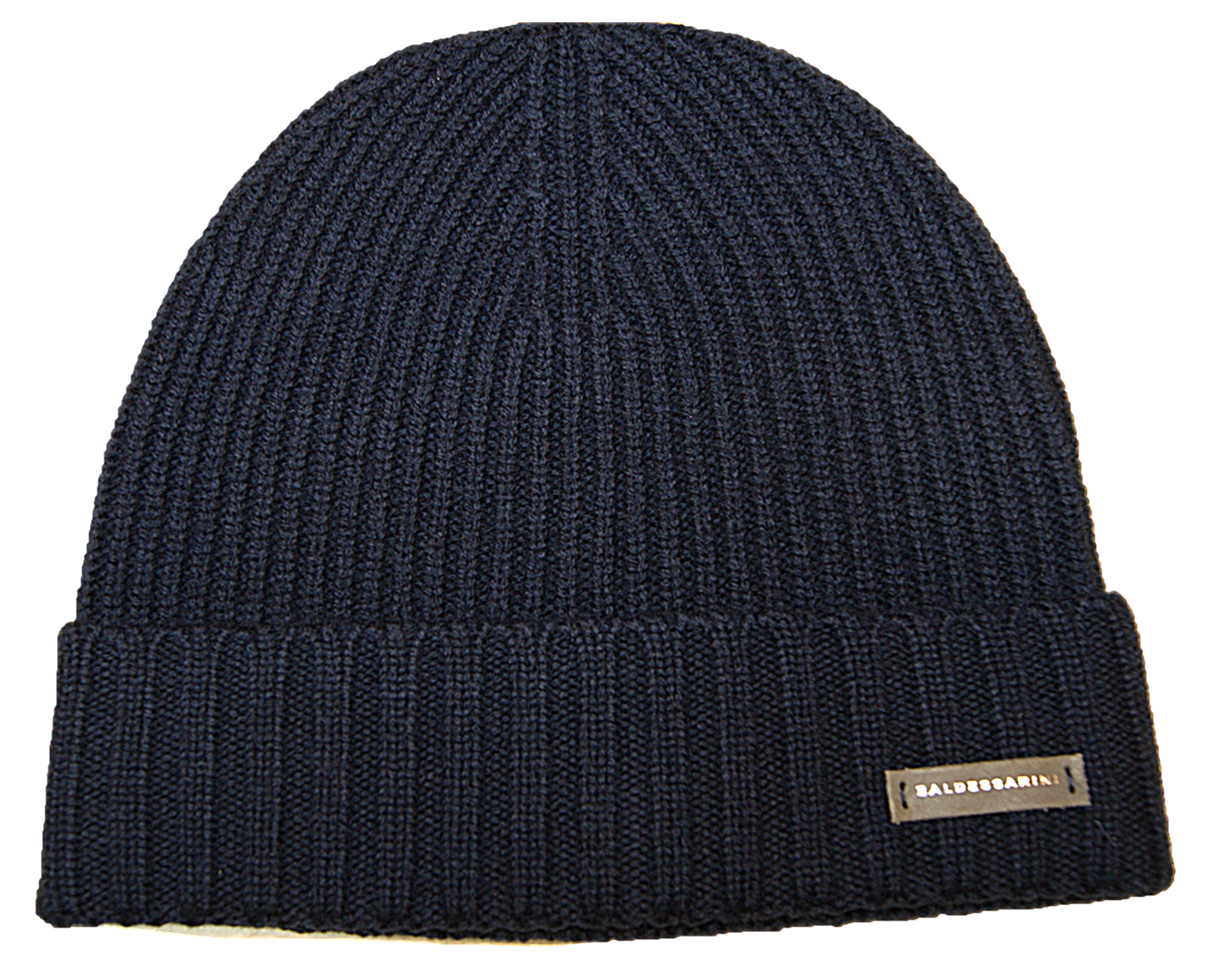 BALDESSARINI Mütze ENZO aus gerippter Wolle mit Leder Logo-Aufnäher dunkelblau 6300