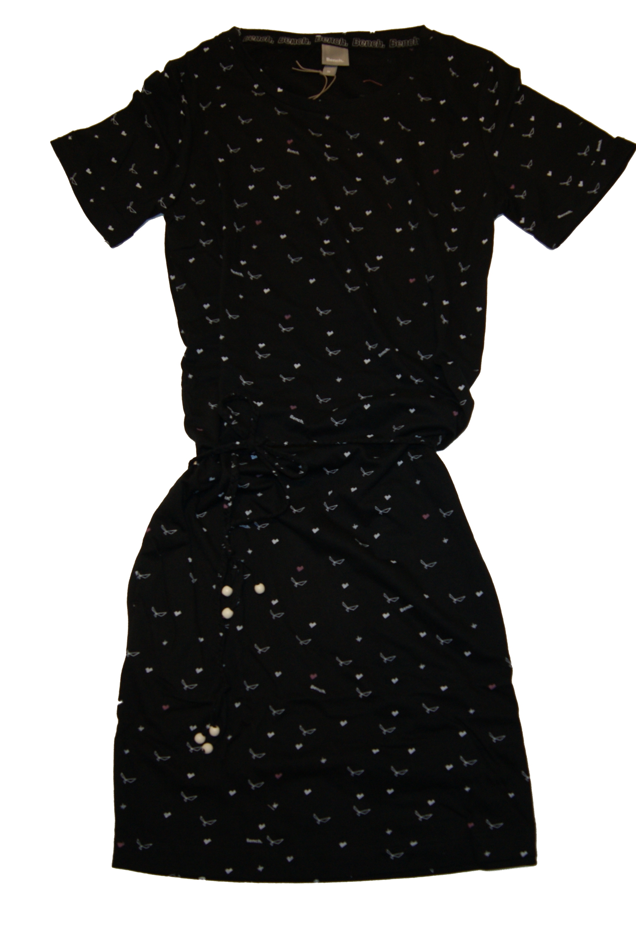DIESES KLEID VON BENCH MIT DEM NAMEN PRINTED JERSEY DRESS .SPORTLICHES REGULAR FIT GESCHNITTENES TAILLENGÜRTEL KLEID MIT RUNDHALS AUSSCHNITT UND ALL OVER VOGEL PRINT .