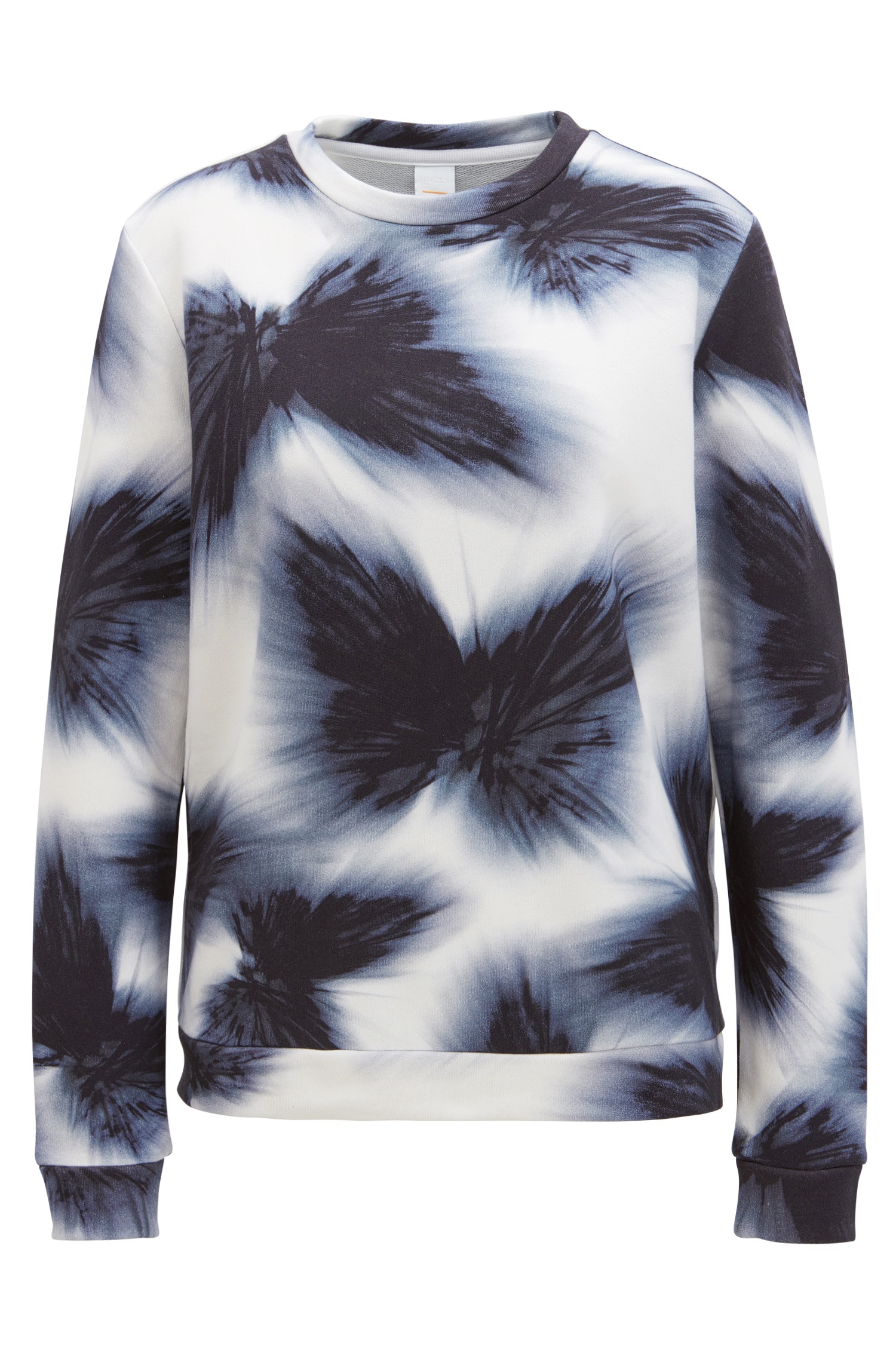 DETAILS  :  RUNDHALS AUSSCHNITT - ABSTAKTES SCHMETTERLINGS MUSTER - ANGEDEUTETE BÜNDCHEN .