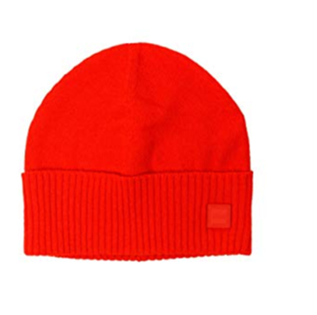 BOSS Feinstrick-Mütze Kotapran mit geripptem Saumaufschlag rot 644