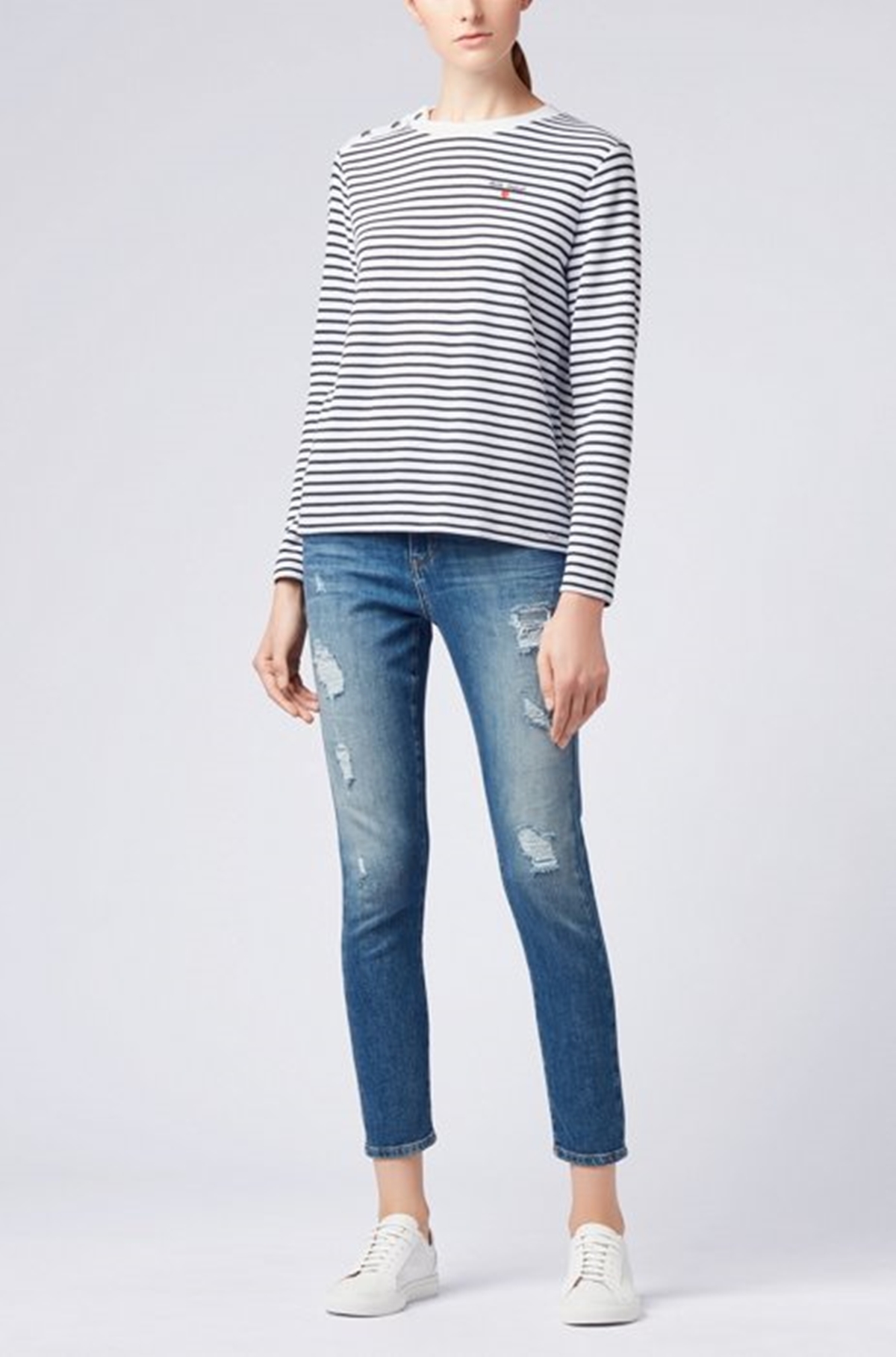 BOSS Gestreiftes Longsleeve Telamour aus Jersey mit aufgesticktem Slogan Farbe 480 S