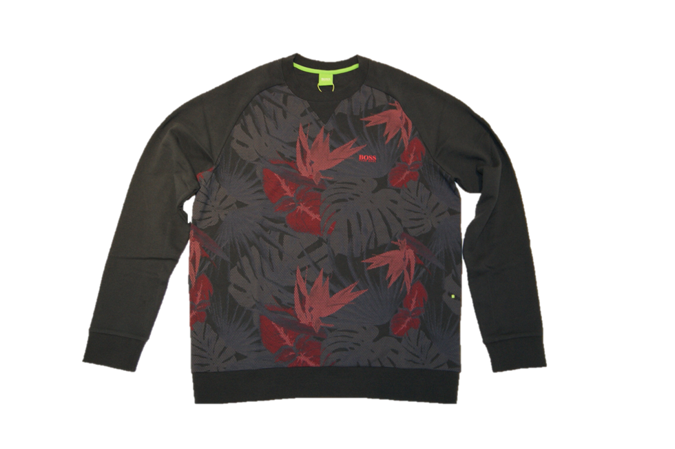 DETAILS: ELASTISCHE RIPPBÜNDCHEN, BOSS LOGO, RUNDHALSAUSSCHNITT, HAWAII BLUMEN MOTIV.