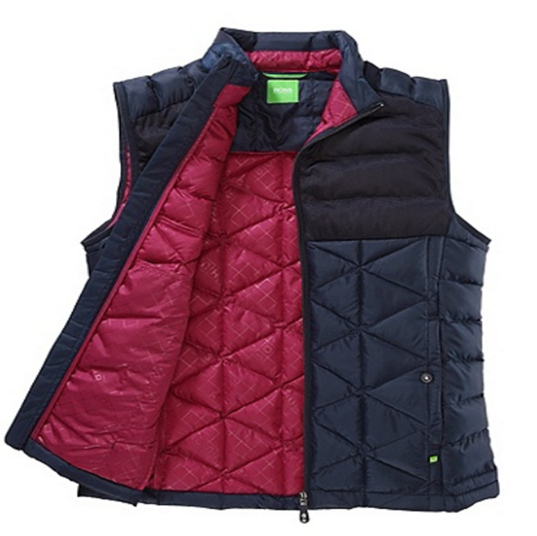 DIESE BOSS GREEN WESTE MIT DEM NAMEN VORDIMO IST EINE THERMO-WESTE AUS WÄRMEREGULIERENDEM UND ATMUNGSAKTIVEM MATERIAL STEPP-OPTIK. IHR SPORTIVER LOOK MIT STEHKRAGEN UND 2 SEITLICHEN EINGRIFFTASCHEN MIT DRUCKKNOPF IMMER EIN HINGUCKER.