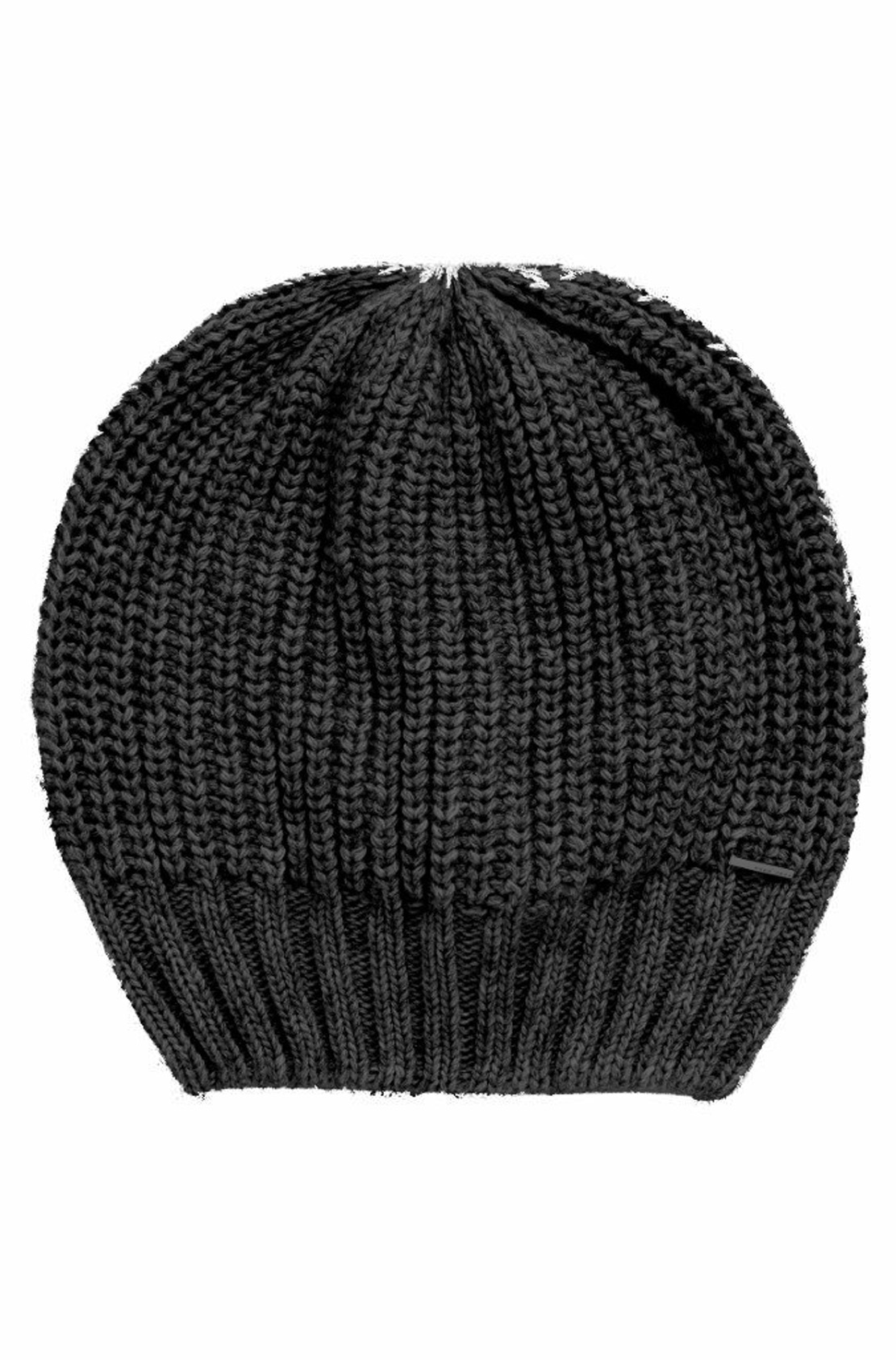 DETAILS : GROBSTRICKMÜTZE - BOSS METALL LABEL ÜBER DEM BÜNDCHEN - ABSCHLUSS GERIPPTES BÜNDCHEN .