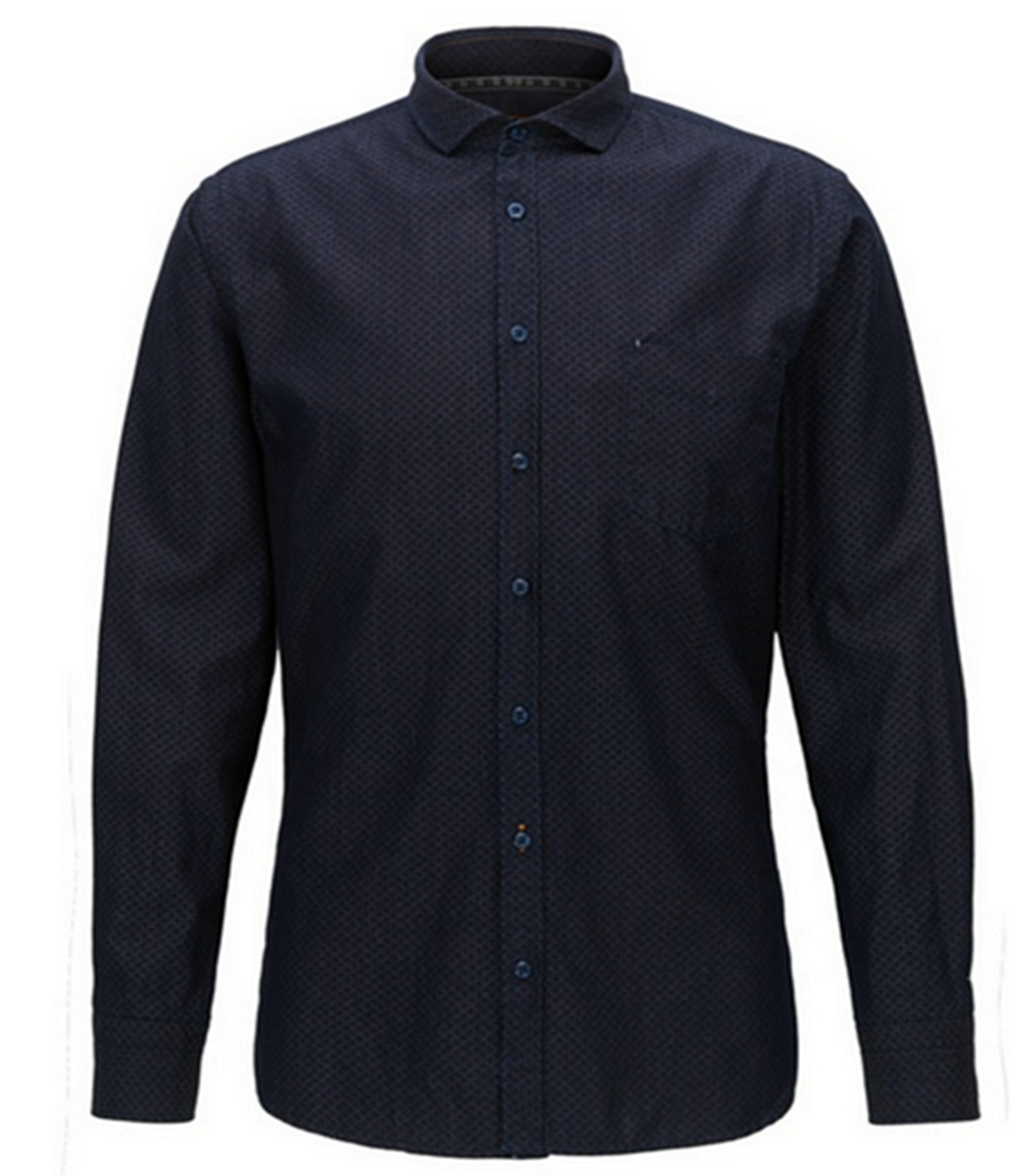 DIESES SHIRT VON BOSS ORANGE MIT DEM NAMEN CATTITUDE .SCHMAL GESCHNITTENES MUSTER SHIRT MIT KLEINEM HAIFISCHKRAGEN .