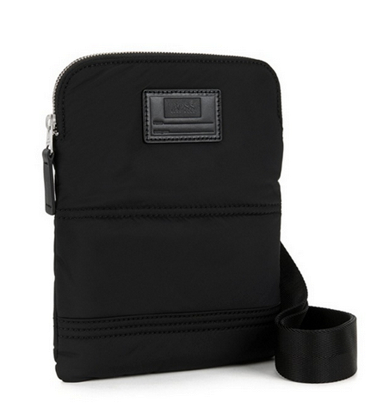 DIESE UMHÄNGETASCHE VON BOSS ORANGE MIT DEM NAMEN BOMBER _S ZIP ENV. MODERNE KLEINE TASCHE MIT STEPPNÄHTEN .