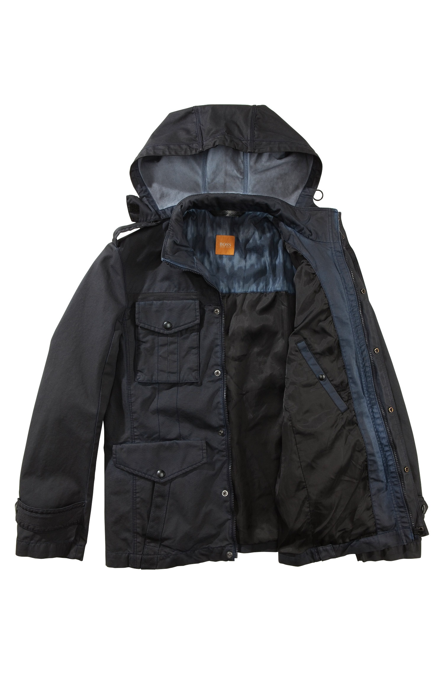 DIESE JACKE VON BOSS ORANGE MIT DEM NAMEN OMNITRONIC- D EIN KLARER FALL VON FREIZEIT .DIESE JACKE AUS HOCHWERTIGER FESTER BAUMWOLLE MIT VIER AUFGESETZTEN TASCHEN ABNEHMBARER KAPUTZE UND DEN SCHULTER UND ÄRMEL RIEGELN SORGEN FÜR EINEN MEHRWERT.