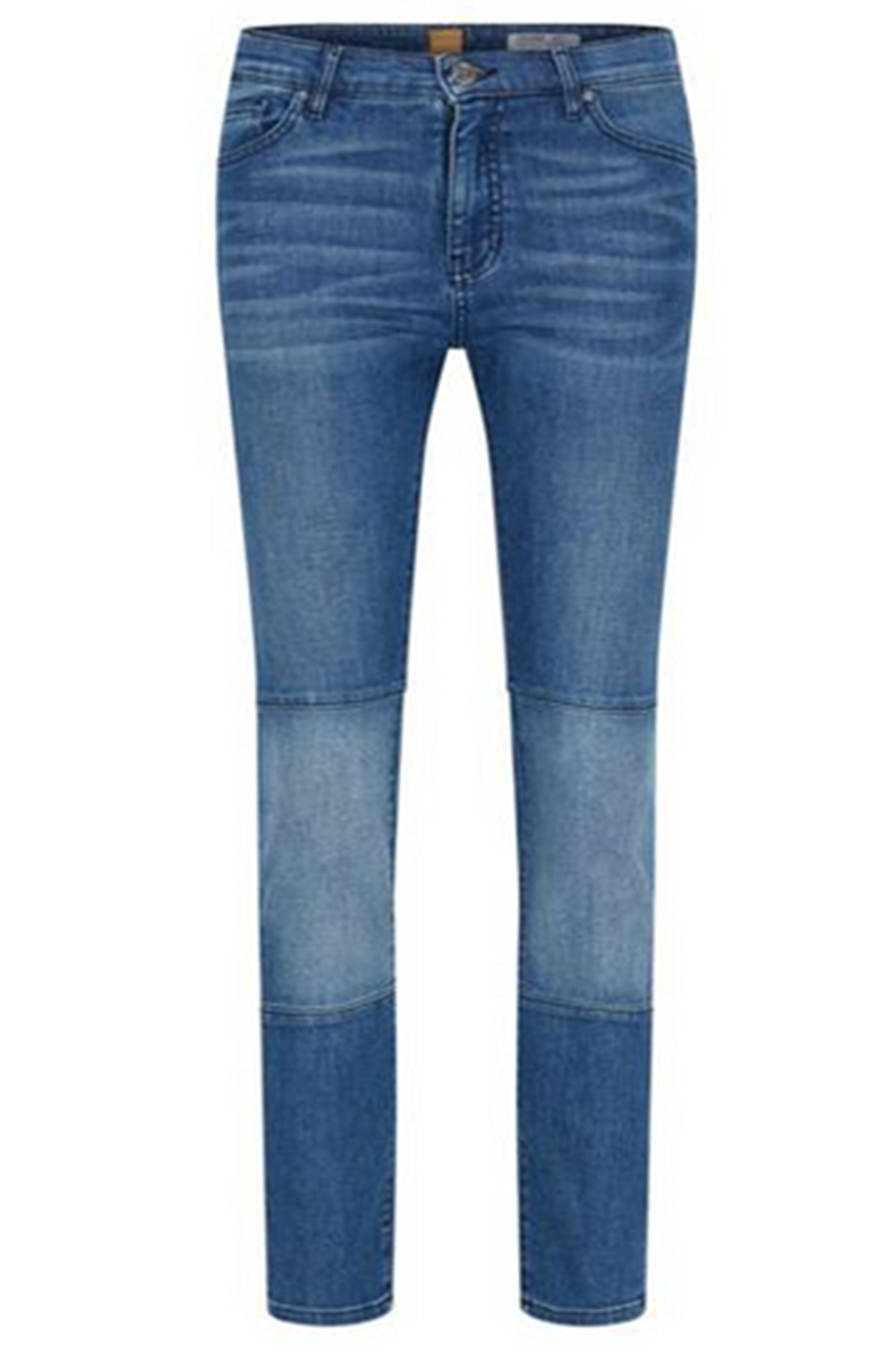 DIESE JEANS VON BOSS ORANGE MIT DEM NAMEN Orange J21 Austin .SCHMAL GESCHNITTENE 5 POCKET JEANS AUS EINER  WEICHEM BAUMWOLL MIX  ELASTHAN  QUALITÄT.DIE  KNIE PATCHES SETZTEN EINEN KONTRAST ZUM SONST CLEANEN LOOK .