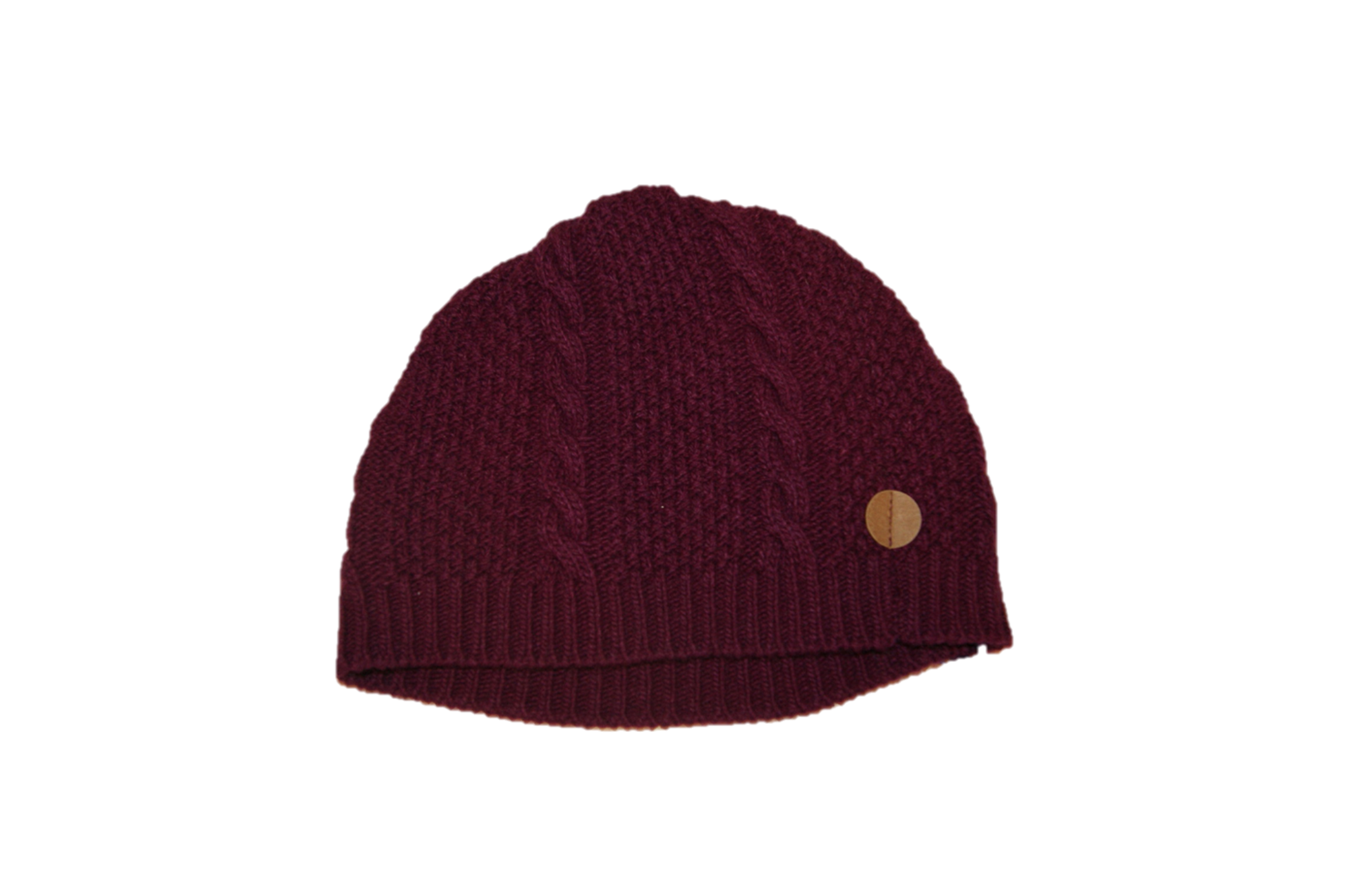 DIESE MÜTZE VON BOSS ORANGE MIT DEM NAMEN FANNIA IN STRICK OPTIK MIT LOGO PLAKETTE AM SAUM