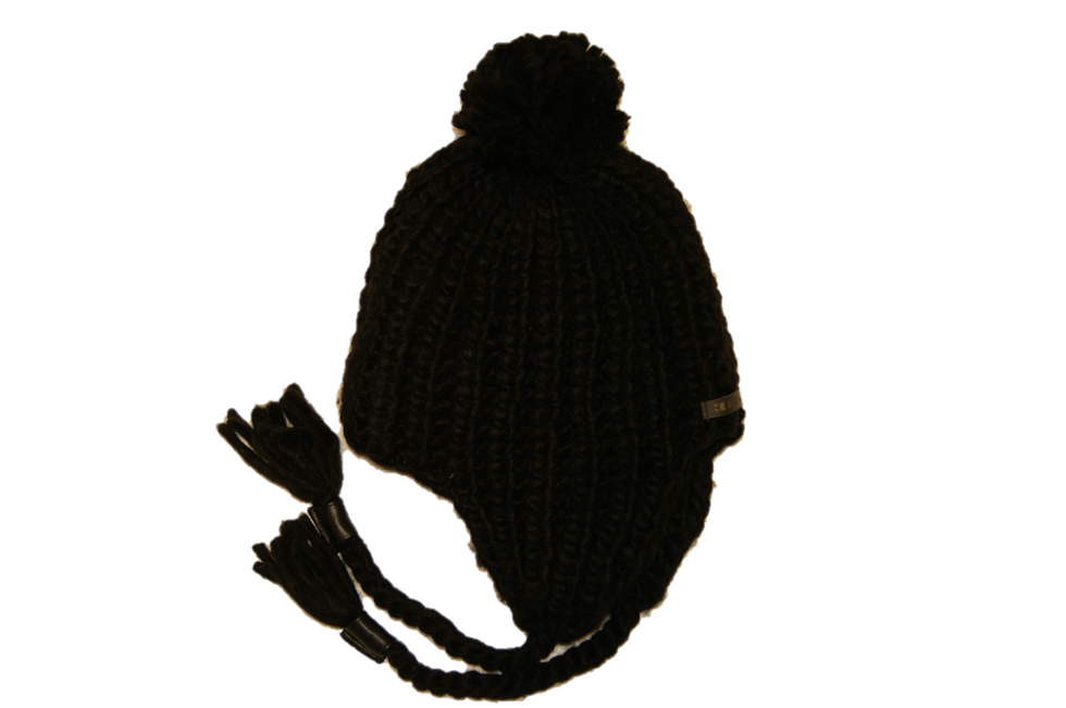DETAILS : WOLLMÜTZE - WOLLBOMMEL - SCHNÜRE ZUM KNOTEN - LEDERLABEL AM HINTEREN TEIL