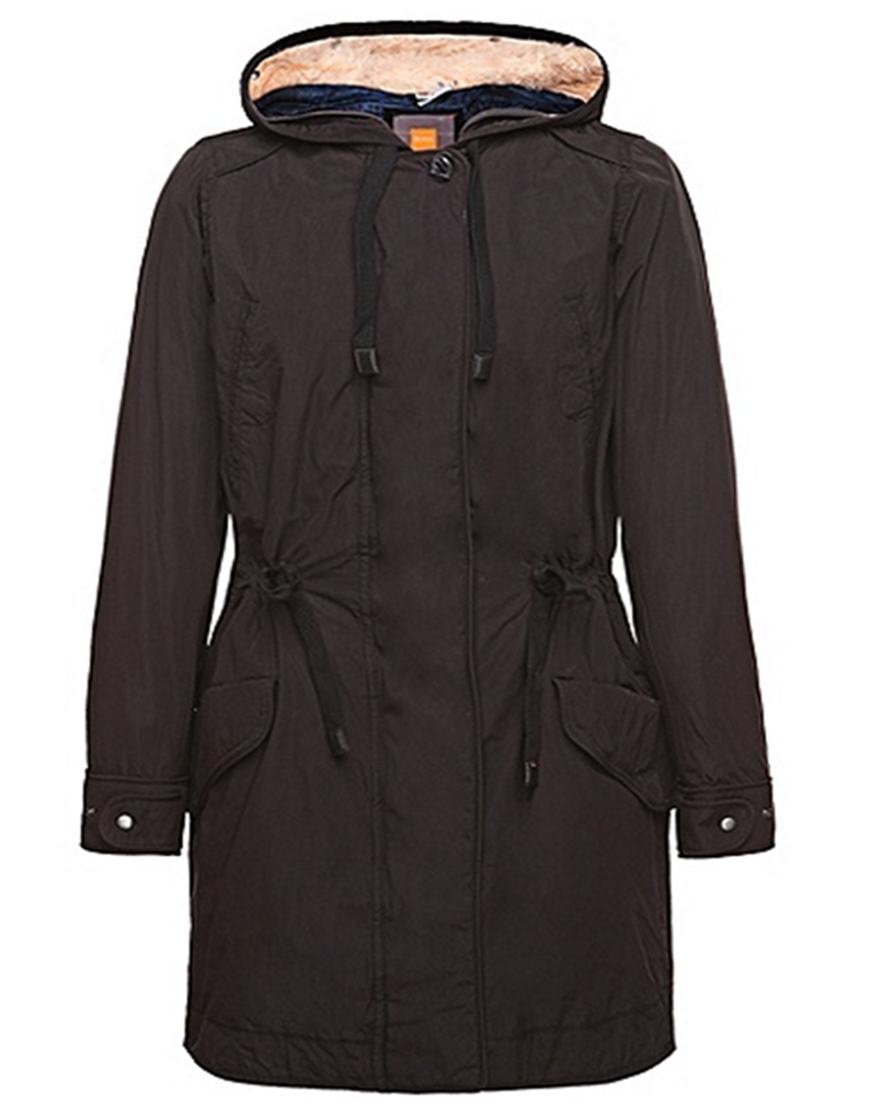 DIESER PARKA VON BOSS ORANGE MIT DEM NAMEN OBALDA2-W LOCKER GESCHNITTENER UNIFARBENER PARKA MIT RAFFINIERTEN SPECIAL VERARBEITUNG .DER PARKA KANN DURCH DEN TUNNELZUG WEIBLICH TAILLIERT ODER LÄSSIG GETRAGEN WERDEN . EINE COOLES EXTRA IST DER HERAUSNEHMBARE KUSCHEL -BESATZ IN FELL OPTIK AN DER INNENSEITE .ANZIEHEN UND DER CITY LOOK IST FERTIG.