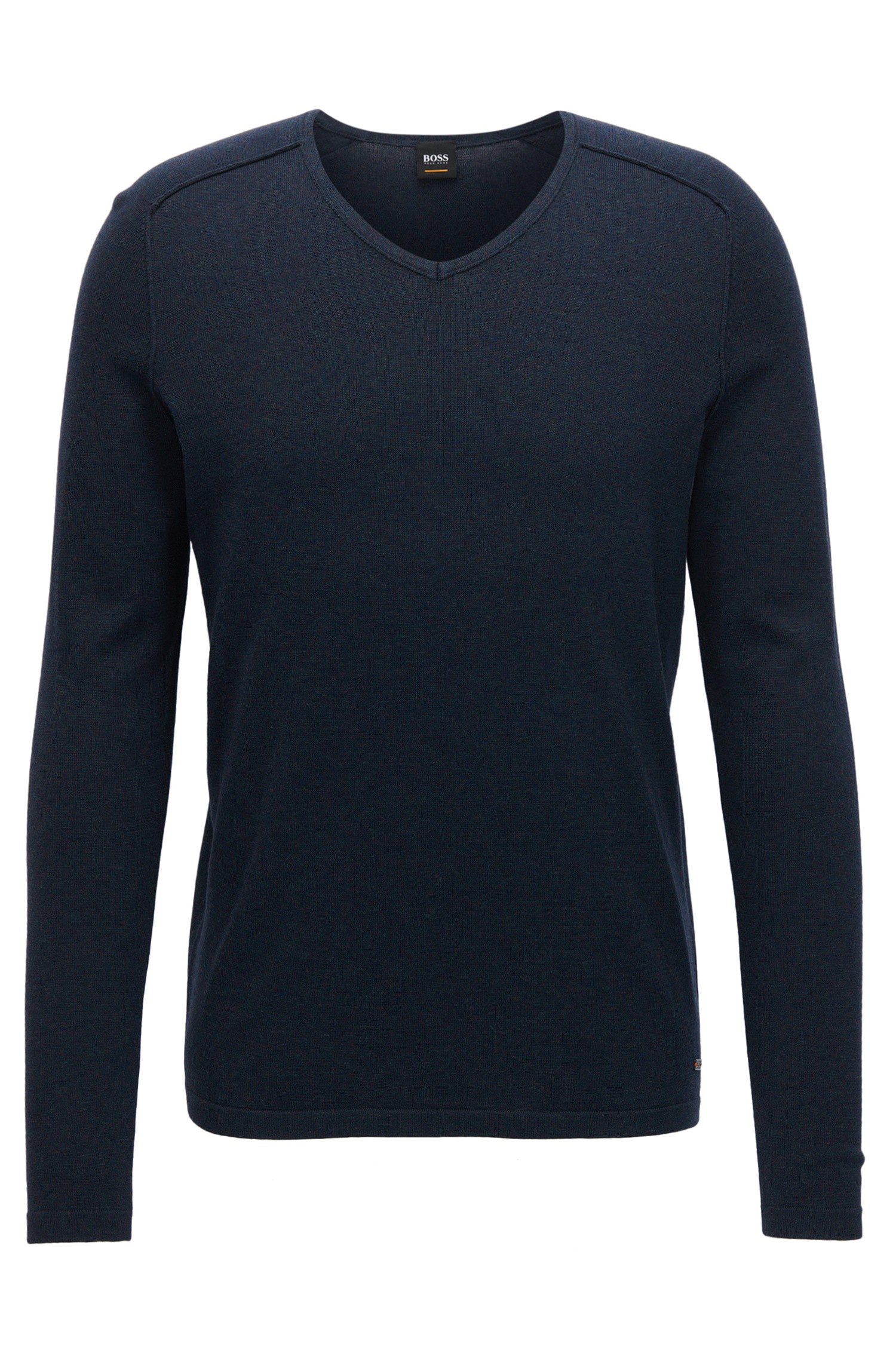 BOSS ORANGE Pullover Ameross aus gestrickter Baumwolle mit V-Ausschnitt und Paspel-Details Farbe dunkelblau 404 XXL