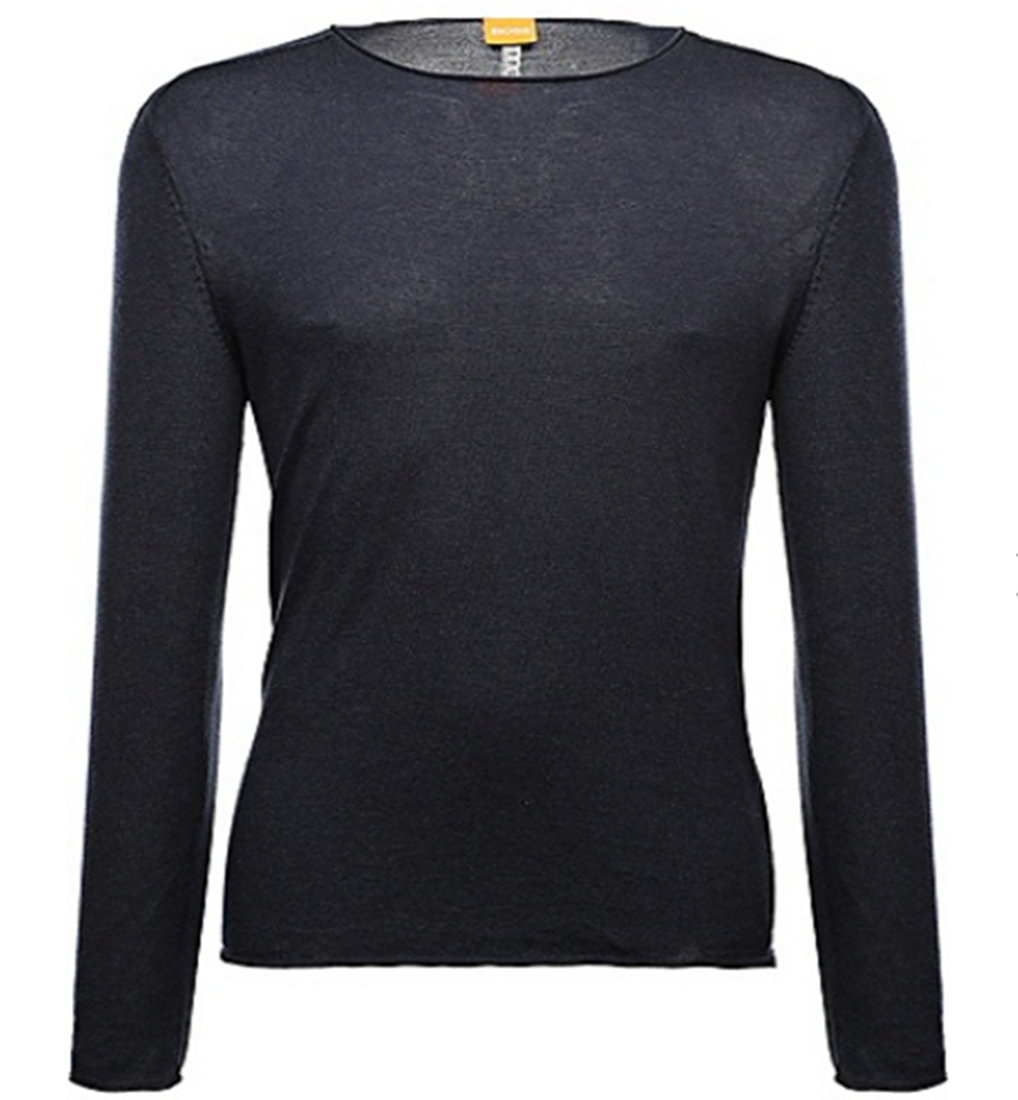 DIESER PULLOVER VON BOSS ORANGE MIT DEM NAMEN KAMER .FEINER LEICHTER STRICK OHNE BÜNDCHEN ABER MIT MODERNEN ROLLSÄUMEN .