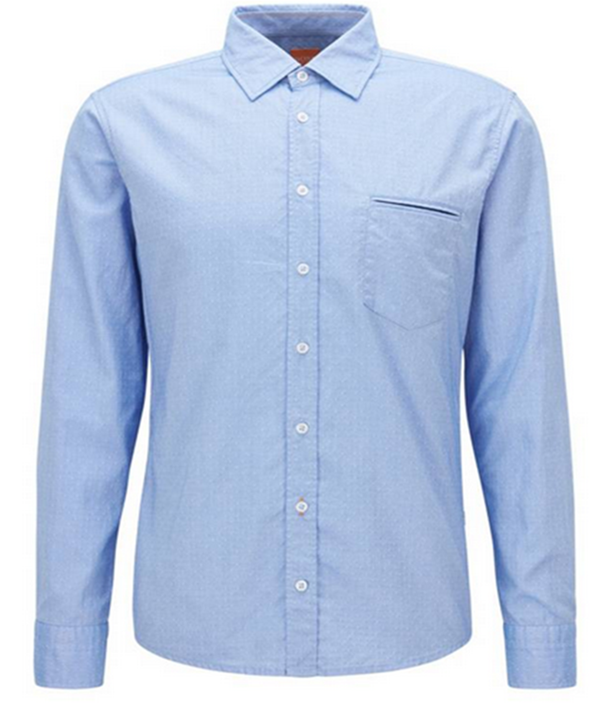 DETAILS : REGULAR FIT - SPITZKRAGEN - STRUKTURIERTE BAUMWOLLE -ANGESCHRÄGTE MANSCHETTEN -BRUSTTASCHE - BOSS ORANGE METALL LOGO LABEL SEITENNAHT .