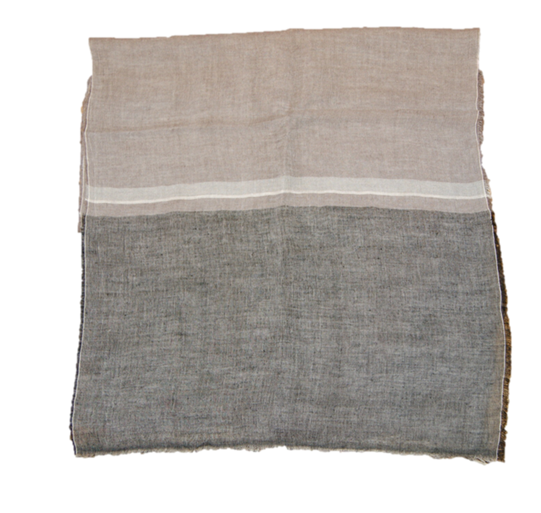 DIESER SCHAL VON BOSS ORANGE MIT DEM NAMEN NEEL .MODERNER UNABHÄNGIGER SCHAL AUS EINER LEINEN -BAUMWOLL KOMPOSITION .BREITE UND SCHMALE STREIFEN SOWIE FRANSEN AN DEN ENDEN STEHEN FÜR EINEN COLLEN LOOK .