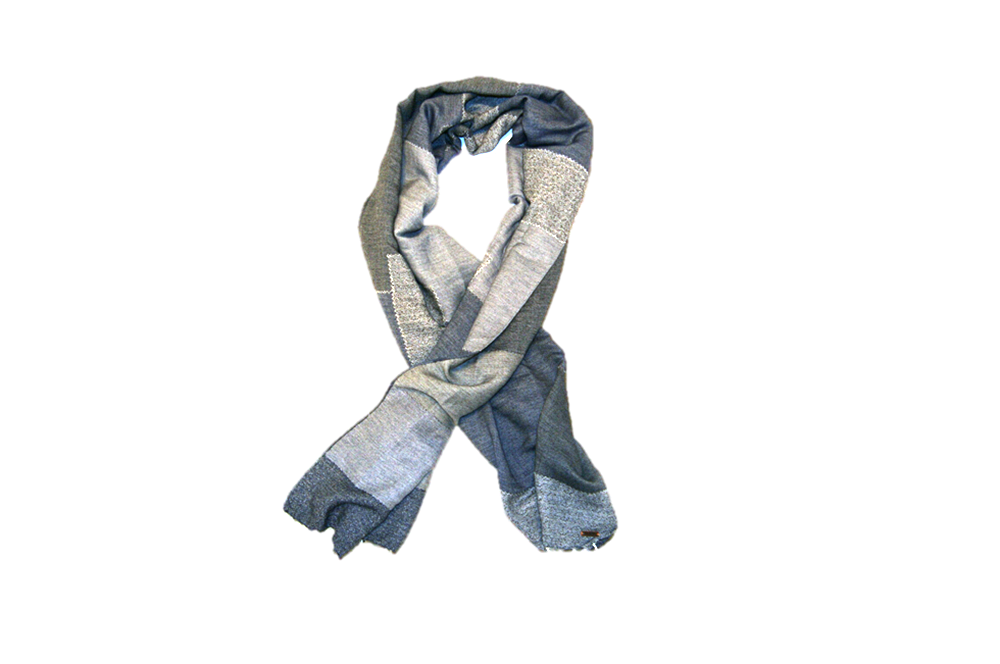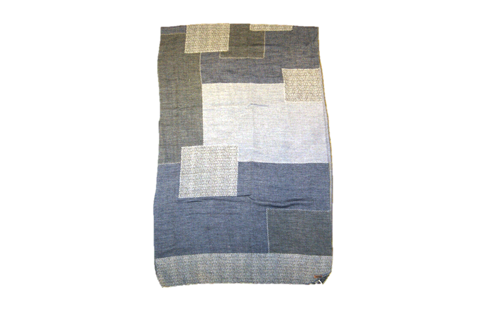 DIESER SCHAL VON BOSS ORANGE MIT DEM NAMEN NEMOR WUNDERSCHÖNER SCHAL IM JEANS PATCHWORK STYLE MIT UNTERSCHIEDLICHEN MUSTERN UND FARBEN.