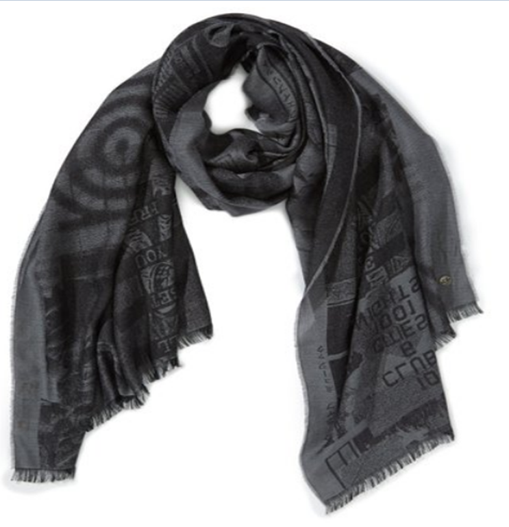 SCHÖNER, GRAUER SCHAL MIT DEM NAMEN NITRON VON BOSS ORANGE HAT COOLE, MODERNE DESIGNS. DIESEN SCHAL KANN MAN MIT EINEM WEISSEN HEMD SEHR GUT KOMBINIEREN.