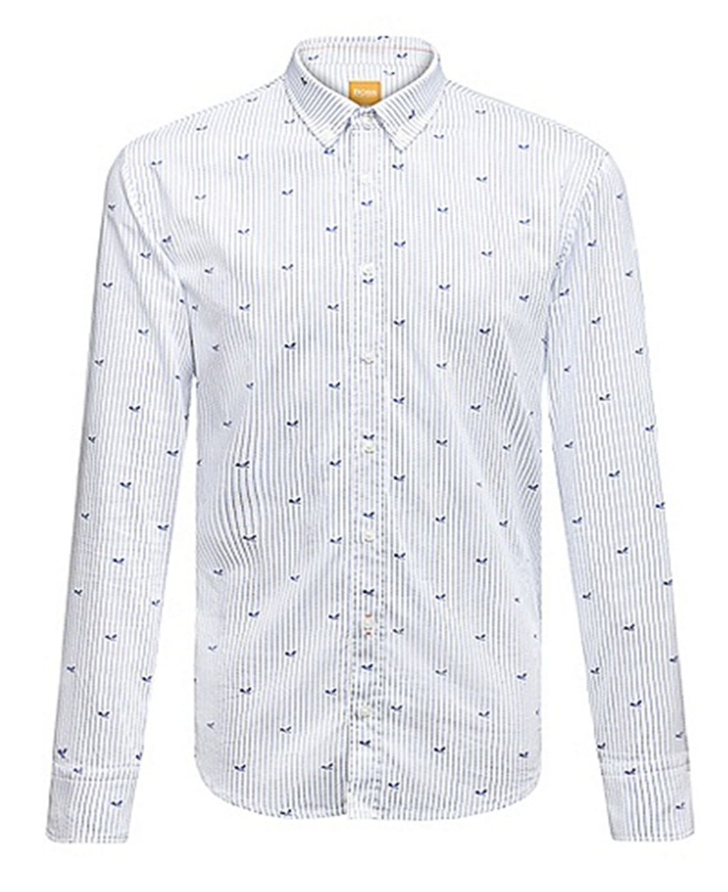 DIESER BOSS ORANGE HEMD MIT DEM NAMEN EDIPOE IST EIN MODISCHES HEMD.NERD HEMD MIT FEINEN STREIFEN UND KLEINEN PIKTROGRAMMEN SOWIE EINEN SURFER .