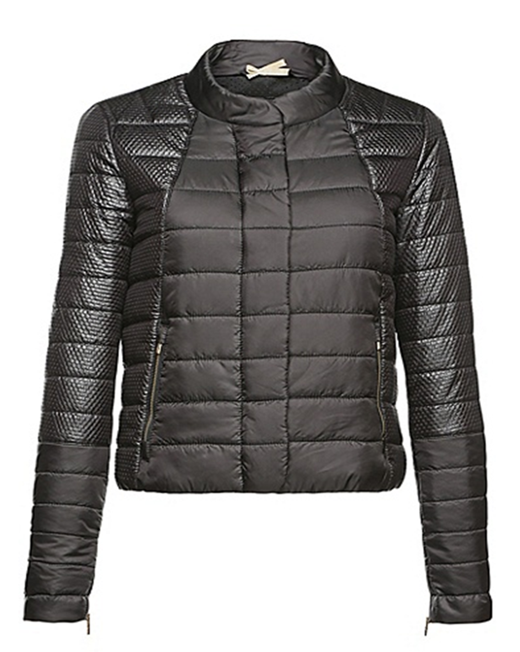 DIESE STEPPJACKE VON BOSS ORANGE MIT DEM NAMEN OVESSA . DIESE HÜFTLANG GESCHNITTENE DAMEN STEPP JACKE AUS WASSERABWEISENDER KUNSTFASER .ZEIGT SICH IM STEPP LOOK UND IST AN DEM SCHNITT EINER BIKER JACKE ANGELEHNT .DER MIX AUS AUS GLATTER UND STRUKTURIERTER STEPPUNG VERLEIHT DER JACKE EINEN ROCKIGEN STIL.