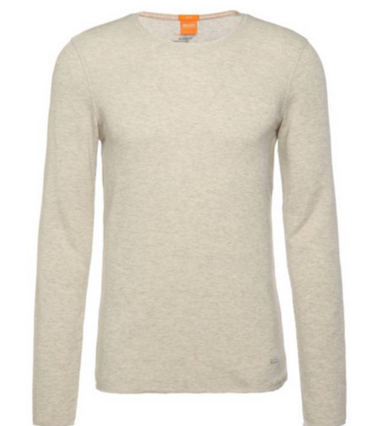 DETAILS : RUNDHALS AUSSCHNITT - BOSS ORANGE KUPFER LABEL VORNE LINKS .