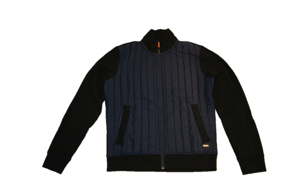 DIESE JACKE VON BOSS ORANGE MIT DEM NAMEN ZANNY EINE SWEATJACKE AUS MATERIAL MIX FRONTSEITE ABGESETZT MIT NYLON STEPP EINSATZ DIE ARME UND DAS RÜCKENTEIL SIND AUS SWEATSHIRT STOFF ..