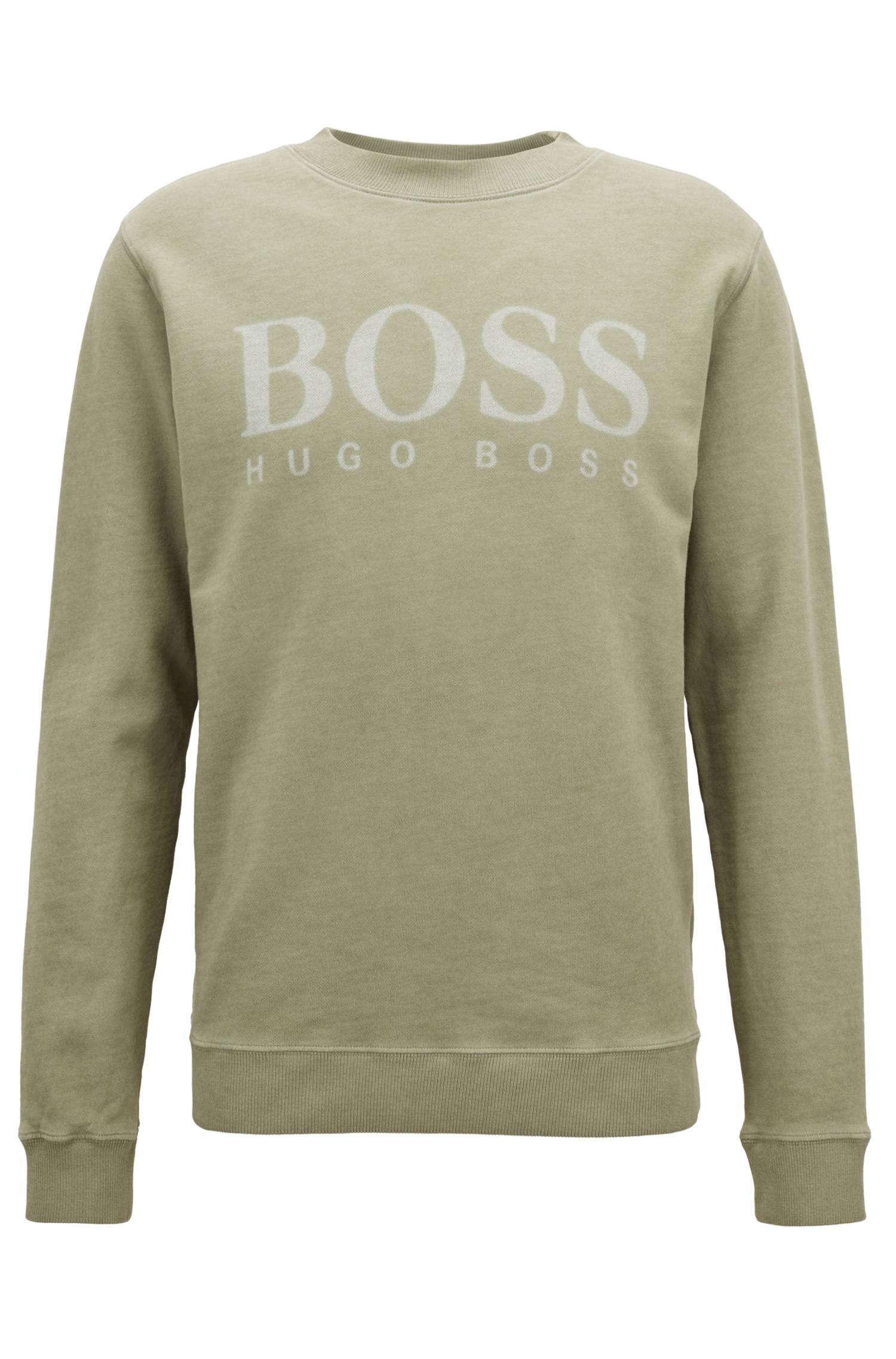 DIESE SWEATSHIRT VON BOSS ORANGE MIT DEM NAMEN WALLKER .SPORLICHES SWEATSHIRT MIT BOSS LOGO AUF DER BRUST IN EINER VORGEWASCHENEN OPTIK .