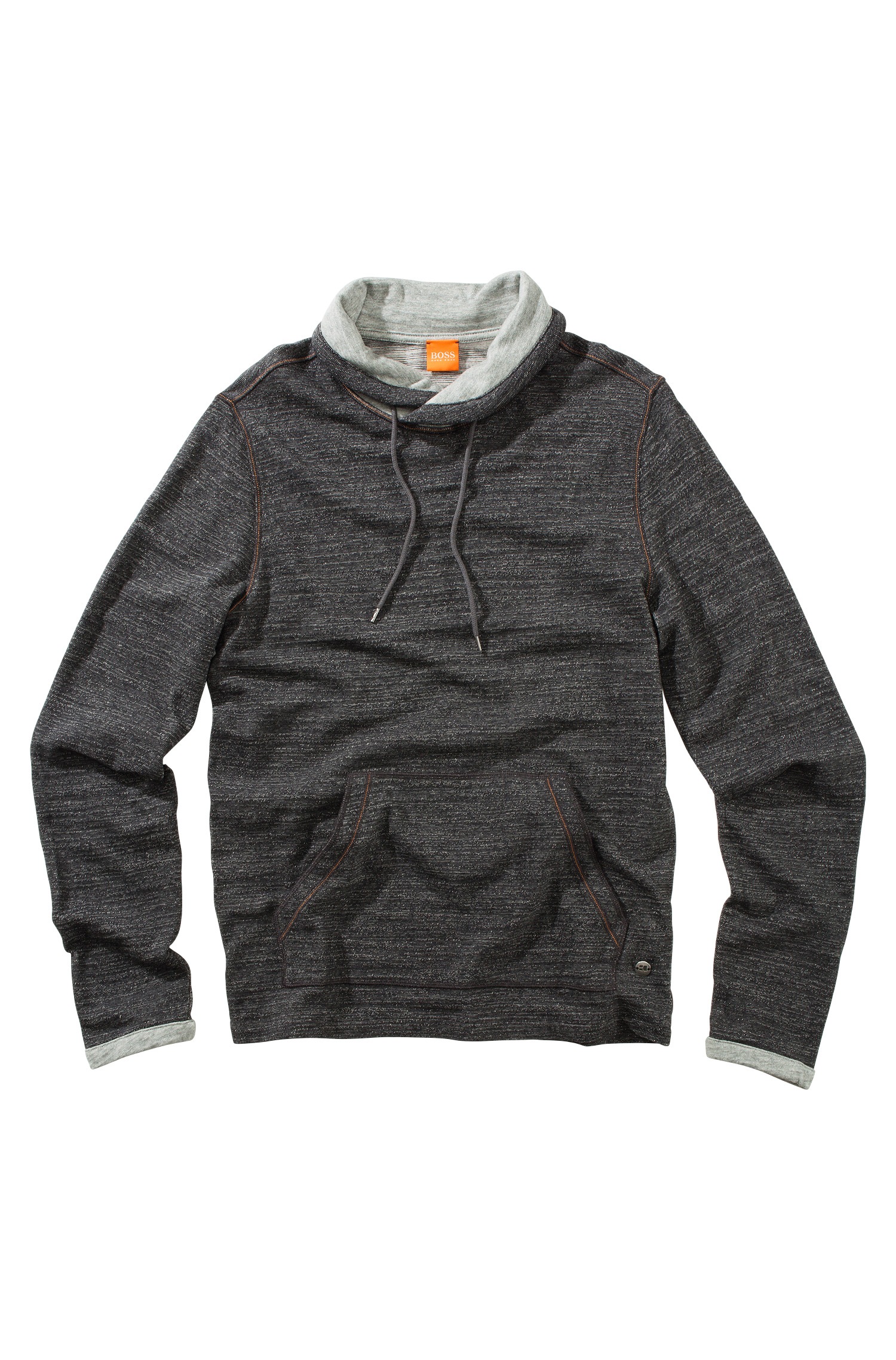 DIESE ENTSPANNTE CASUAL-ATTITÜDE DES SCHMAL GESCHNITTENEN PULLOVERS VON BOSS ORANGE ÜBERZEUGT. DENN DER LOCKER FALLENDE BREITE STEHKRAGEN MIT TUNNELZUG KREIERT EINEN UNKONVENTIONELLEN LOOK.