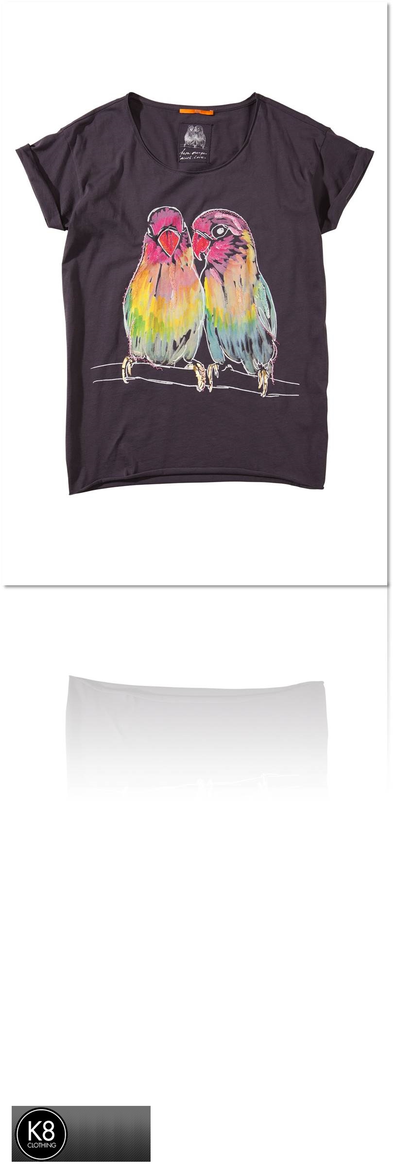 DETAILS : LOCKERES TEE SHIRT -VOGELMOTIV AUF DER VORDERSEITE- LABEL PATCH HINTEN AM SAUM.