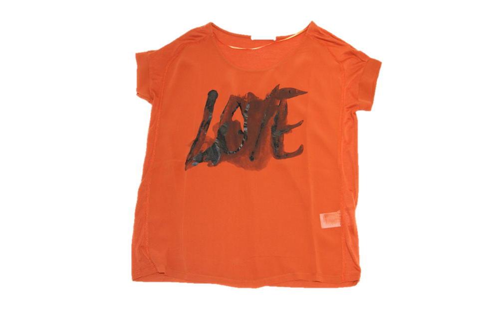 DETAILS: SLIM-FIT, RUNDHALS-AUSSCHNITTMIT ROLLSAUM, UNIFARBENES DESSIN, VORDERSEITE DURCH ´LIEBE´ DRAPIERTEN TÜLL SCHRIFTZUG, BOSS ORANGE PRÄGUNG AM NACKEN