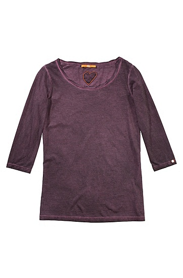 DETAILS: AUFGENÄHTES HERZ INNEN, 1/2 ÄRMEL, RUNDHALS-AUSSCHNITT, BOSS ORANGE LOGO LINKS AM ÄRMEL