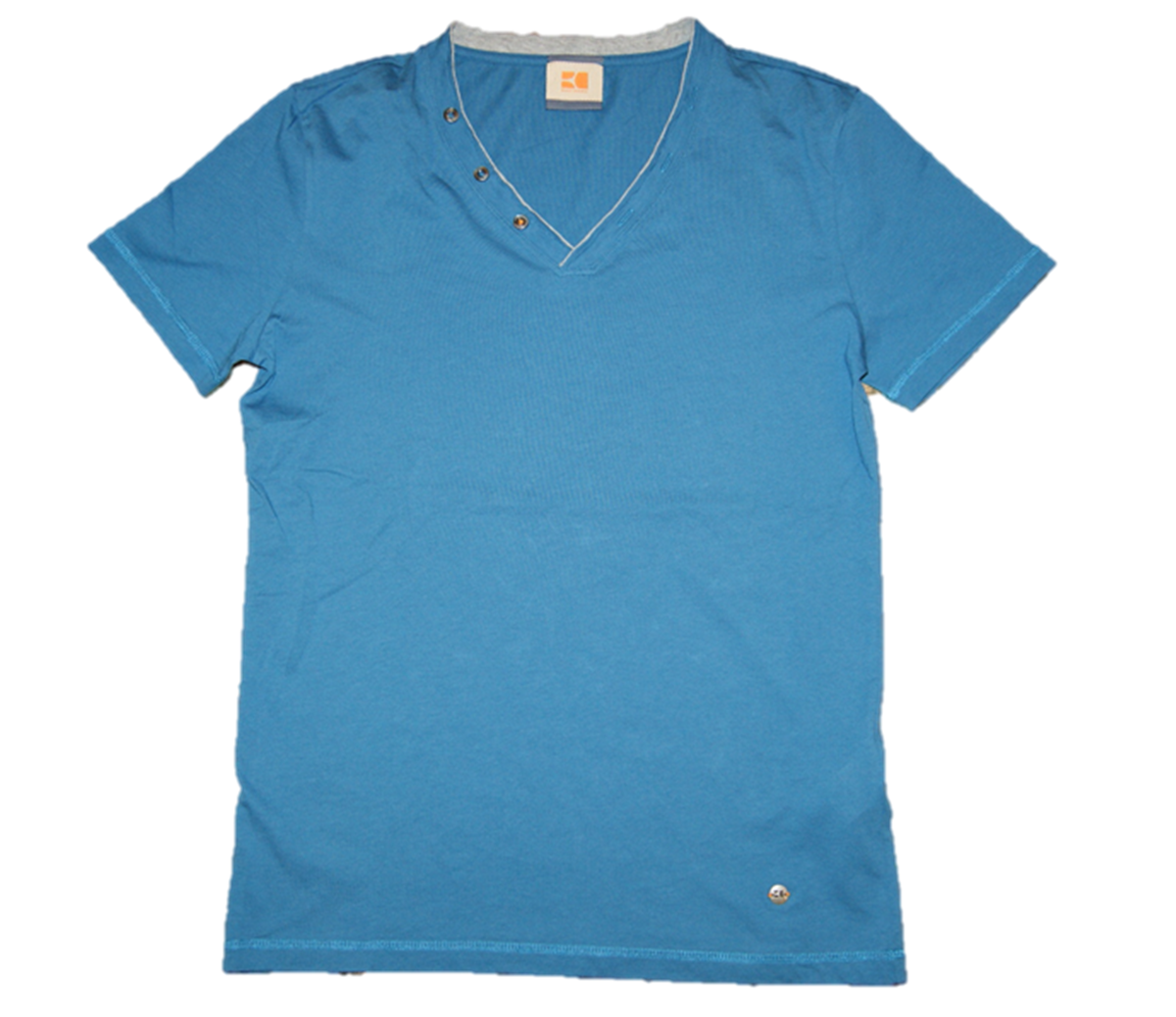 T-SHIRT DETAILS: V AUSSCHNITT - SLIM-FIT - AUSSCHNITT GRAU ABGESETZT UND MIT 3 KNÖPFEN ALS DEKO - BOSS ORANGE LABEL AUS METALL AM BUND LINKS