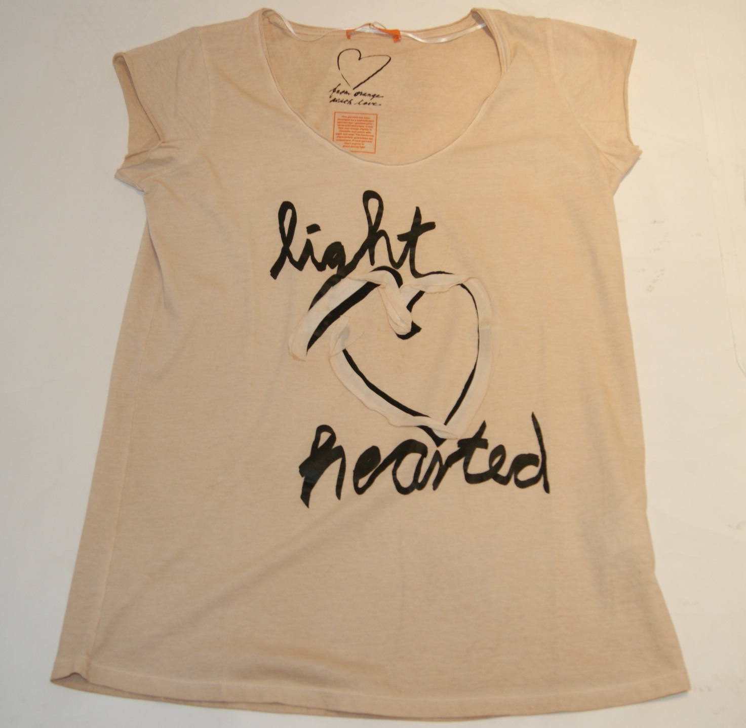DIESE TEE SHIRT VON BOSS ORANGE MIT DEM NAMEN TORASIA WUNDERSCHÖNES LOVE SHIRT MIT HERZ SAMTBAND SCHRIFTZUG UND LIGHT HEARTED BUCHSTABEN.WE LOVE IT.