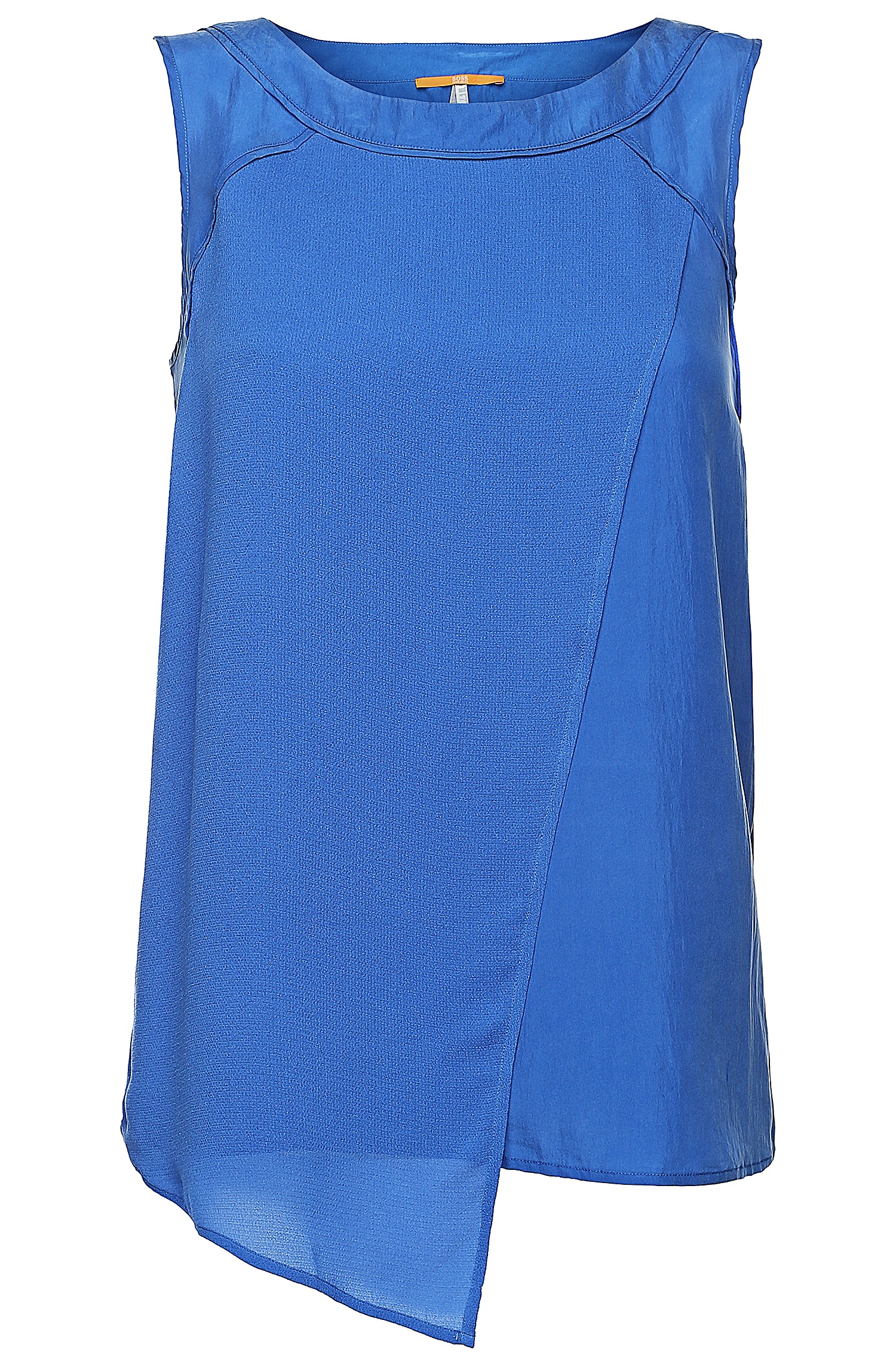 DIESES TOP VON BOSS ORANGE MIT DEM NAMEN ECOCO . UNIFARBENES SEIDENTOP IM ASYMMETRISCH GEARBEITETEN LAGEN-OPTIK .