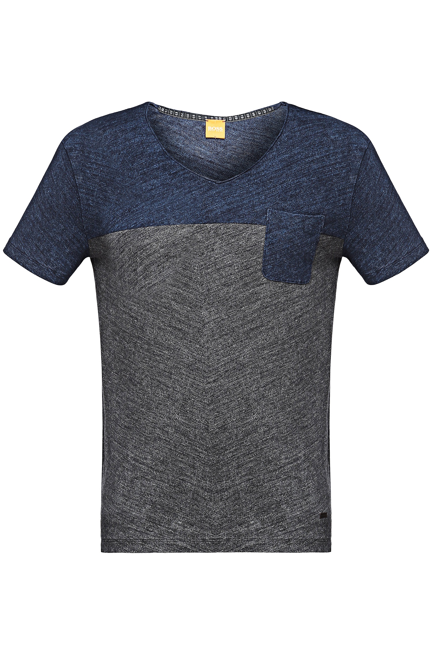 DETAILS : V- AUSSCHNITT - BRUSTTASCHE - BOSS ORANGE KUPFER LABEL ÜBER DEM SAUM .