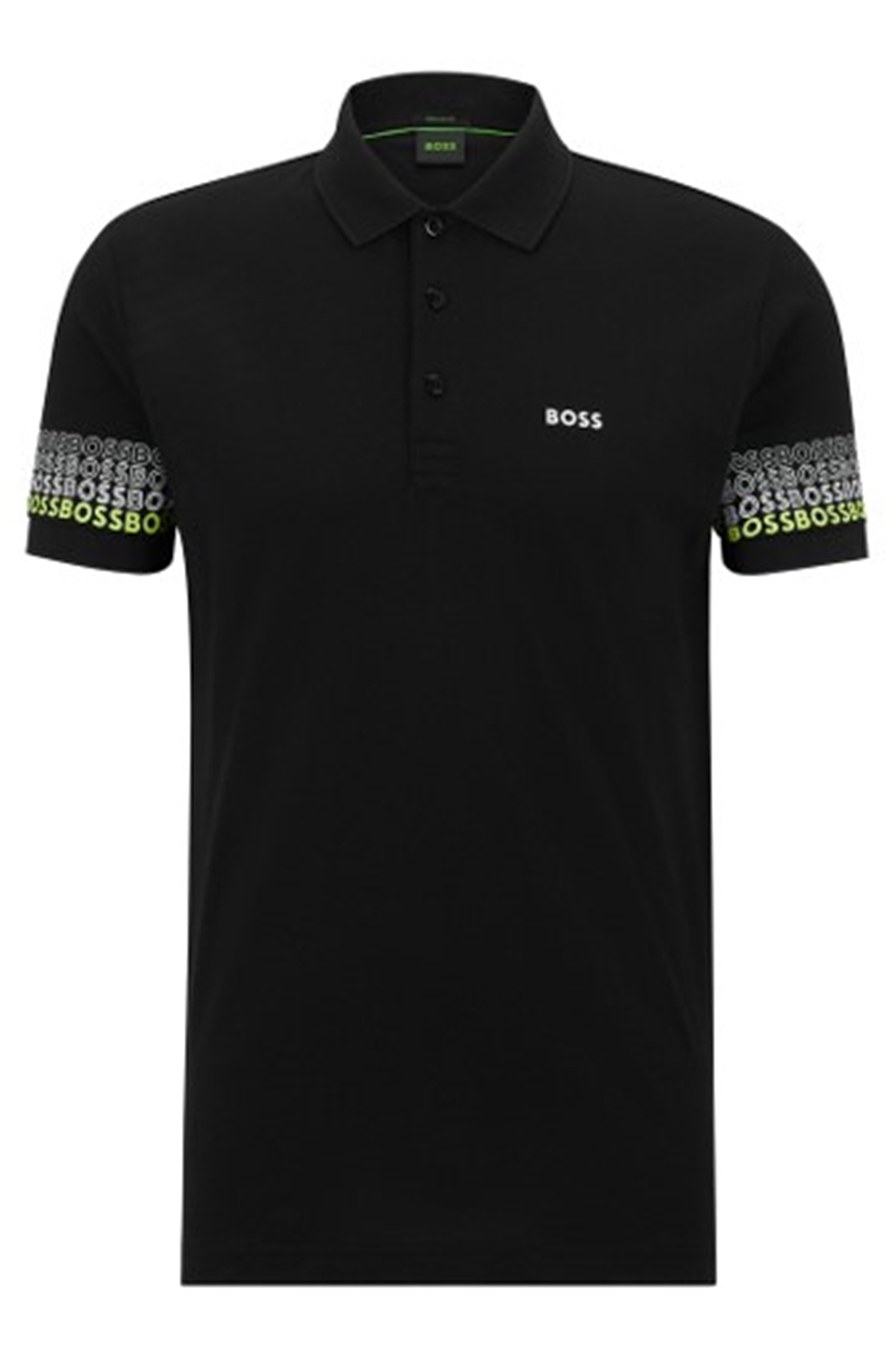 Boss Paddy 2 Poloshirt aus Baumwoll-Jacquard mit Piqué-Struktur und mehrfarbigen Logos schwarz 001