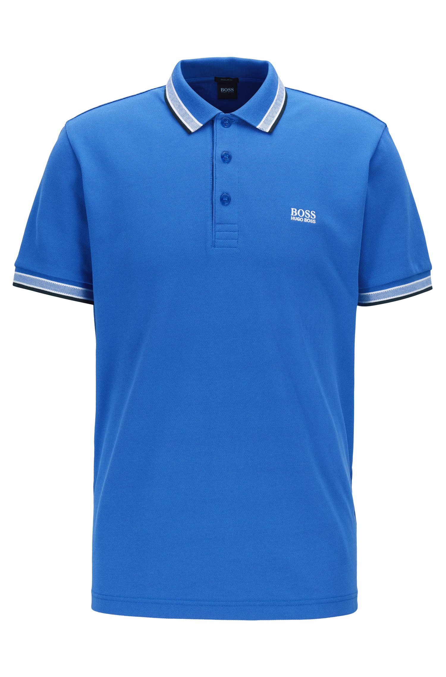 Markantes BOSS Poloshirt mit gerader Passform und zeitloser Silhouette. Das sportive Herren-Polo aus reinem Baumwoll-Piqué ist leicht und atmungsaktiv. Kontrastfarbene Streifen an Kragen und Ärmelbündchen sowie eine Logo-Stickerei auf der Brust runden das Shirt ab. Für einen funktionellen Touch sorgt das charakteristische Logo-Detail an der Kragenunterseite.