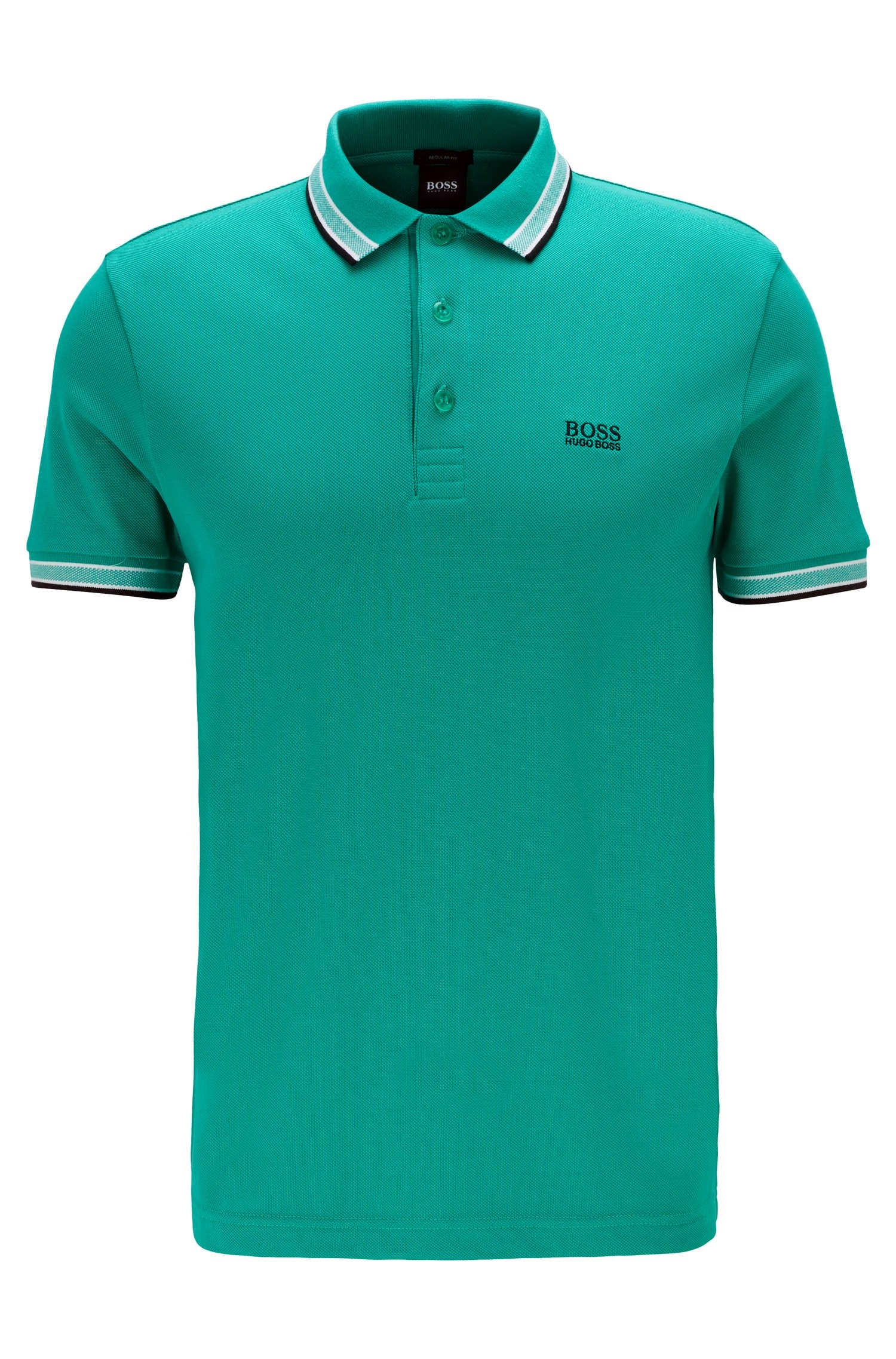 Markantes BOSS Poloshirt mit gerader Passform und zeitloser Silhouette. Das sportive Herren-Polo aus reinem Baumwoll-Piqué ist leicht und atmungsaktiv. Kontrastfarbene Streifen an Kragen und Ärmelbündchen sowie eine Logo-Stickerei auf der Brust runden das Shirt ab. Für einen funktionellen Touch sorgt das charakteristische Logo-Detail an der Kragenunterseite.