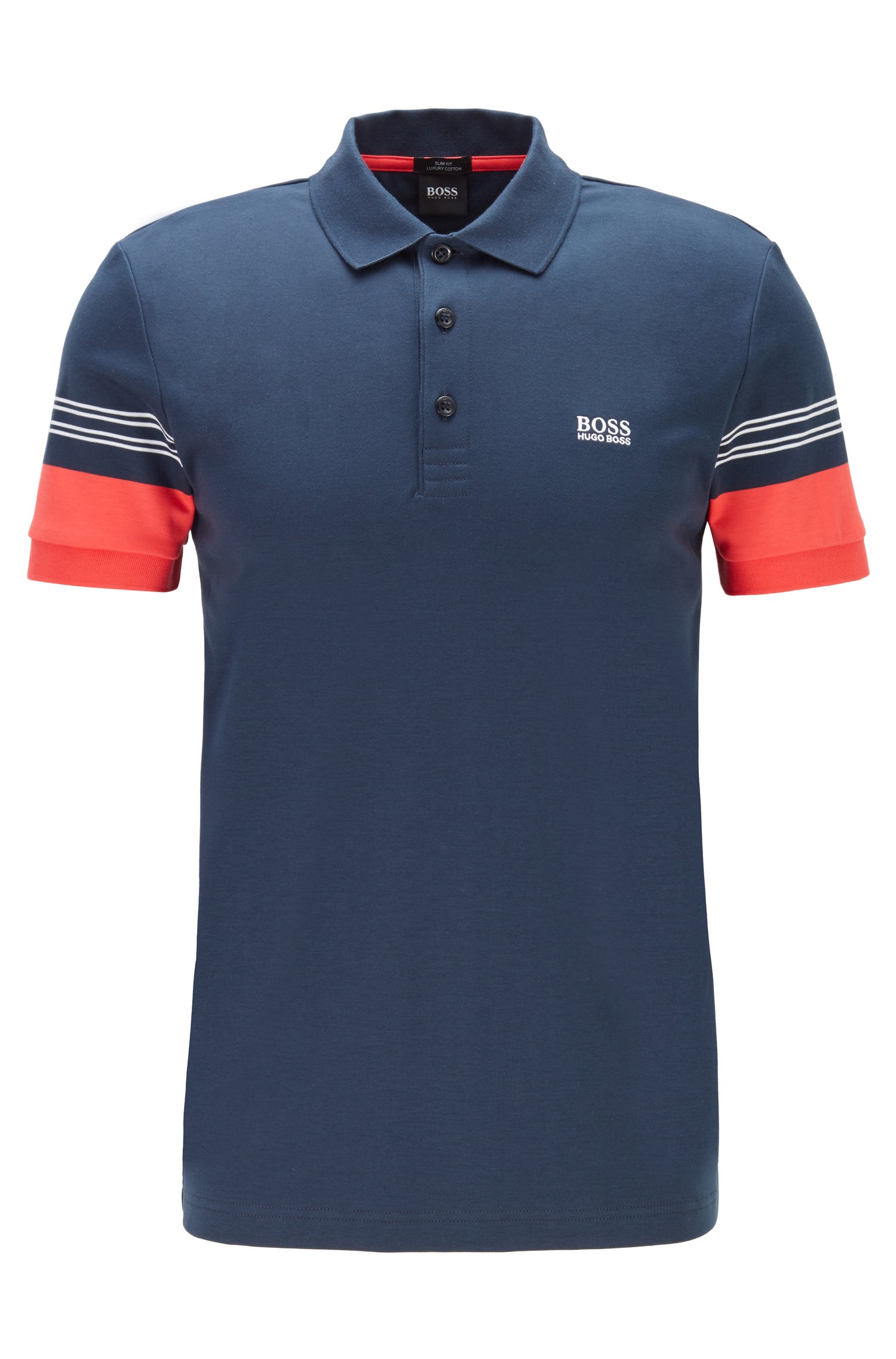 BOSS Poloshirt PAULE 1mit Streifen-Dessin an den Ärmeln dunkelblau 410 XXXL