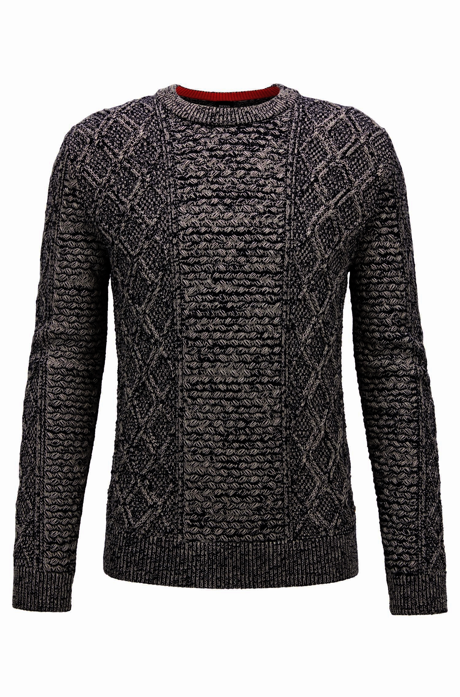 BOSS Pullover AKASELLY aus Baumwoll-Mix mit dreidimensionalem Zopfmuster grau 022 M