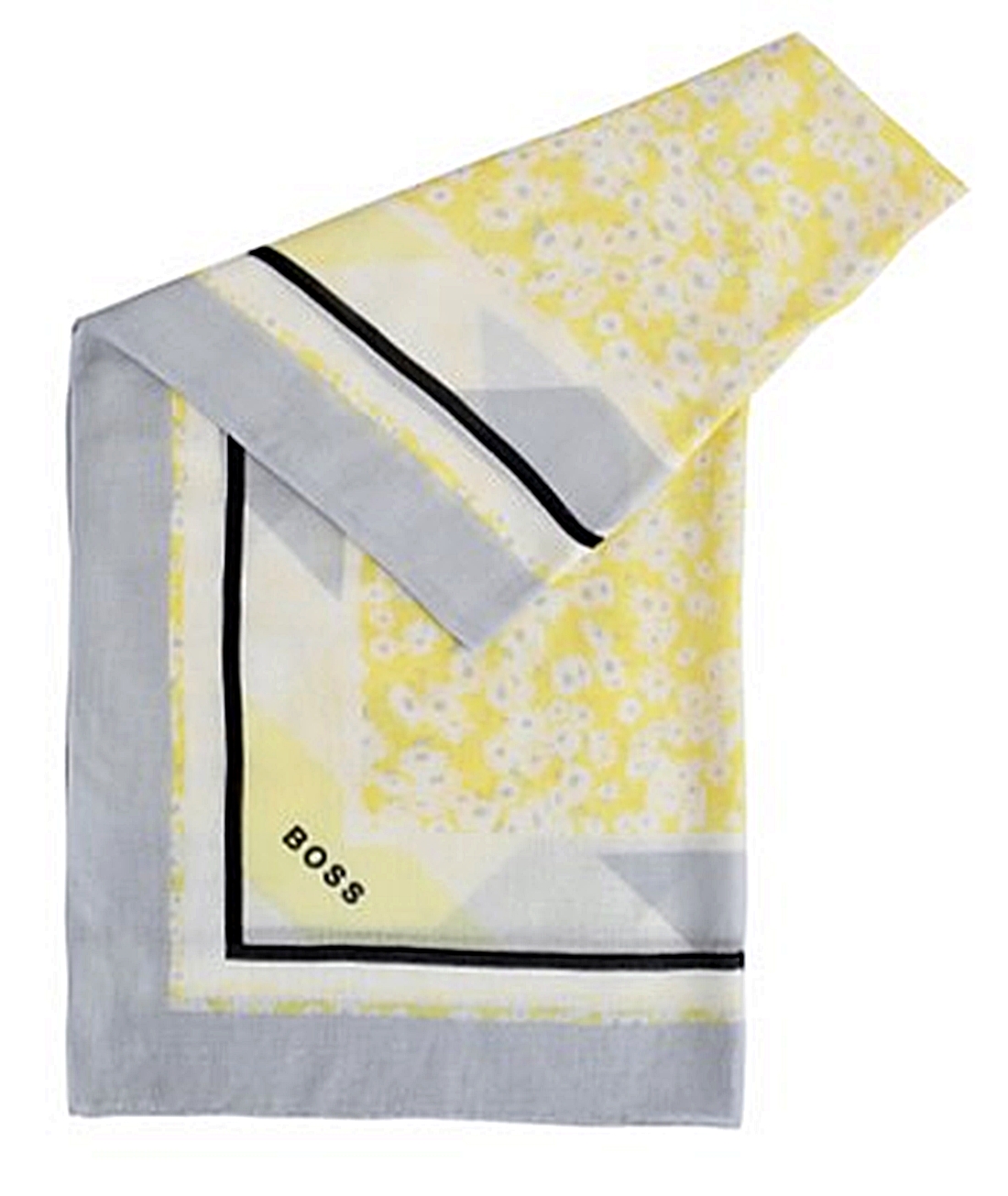 BOSS Quadratischer Schal NATYPE aus gemusterter Baumwolle mit Modal gemustert gelb