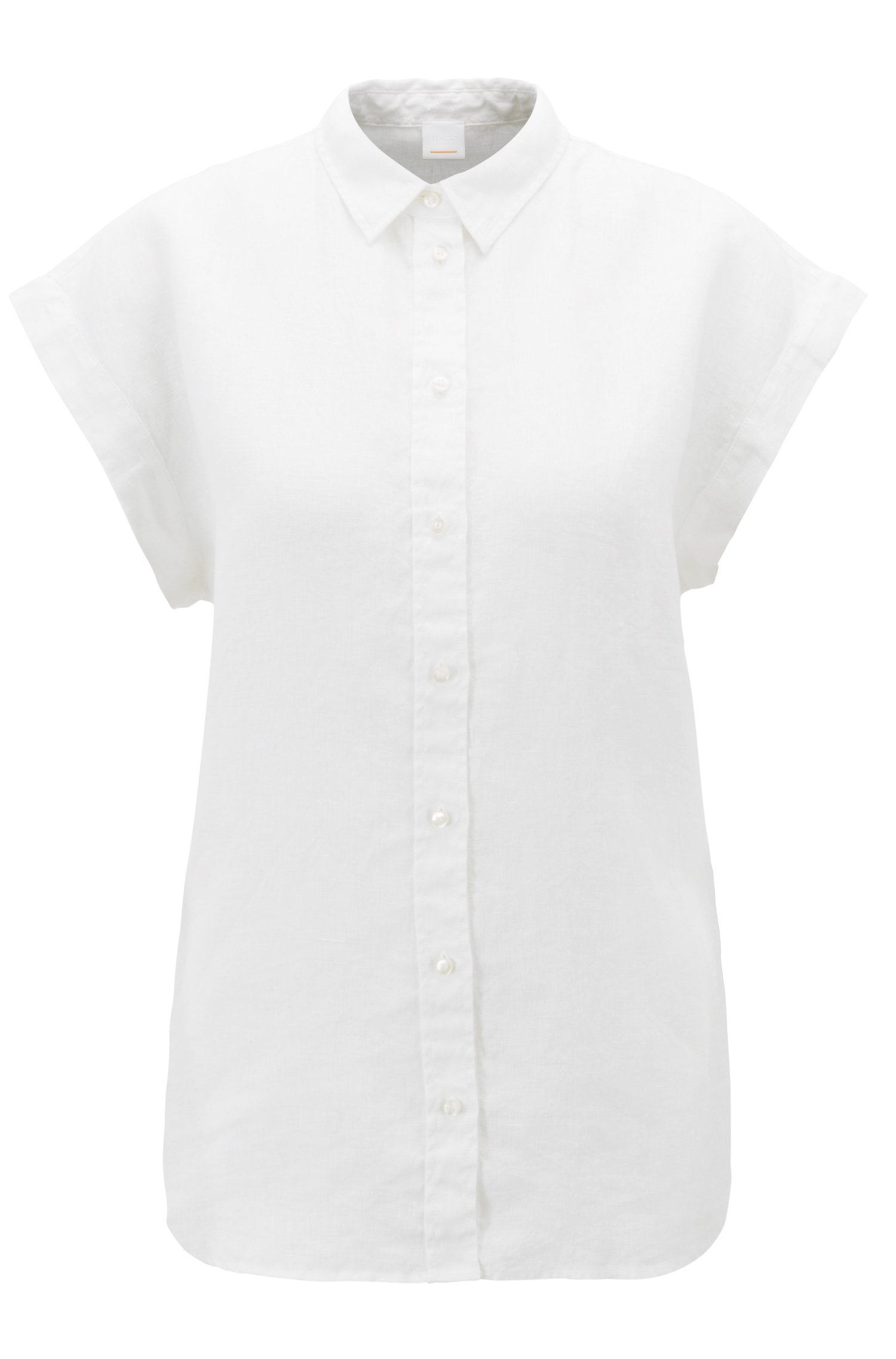 BOSS Regular-Fit Bluse EMIRTA aus reinem Leinen mit kurzen Ärmeln und Spitzkragen weiss 100 34
