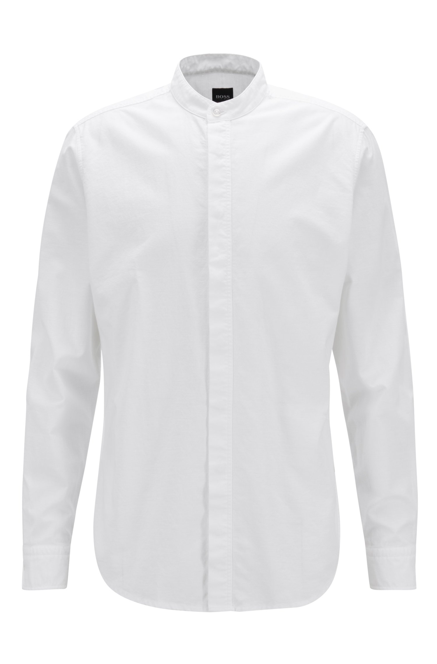 BOSS Regular-Fit Hemd RACE aus angerauter Baumwolle mit Stehkragen Weiß 100 M