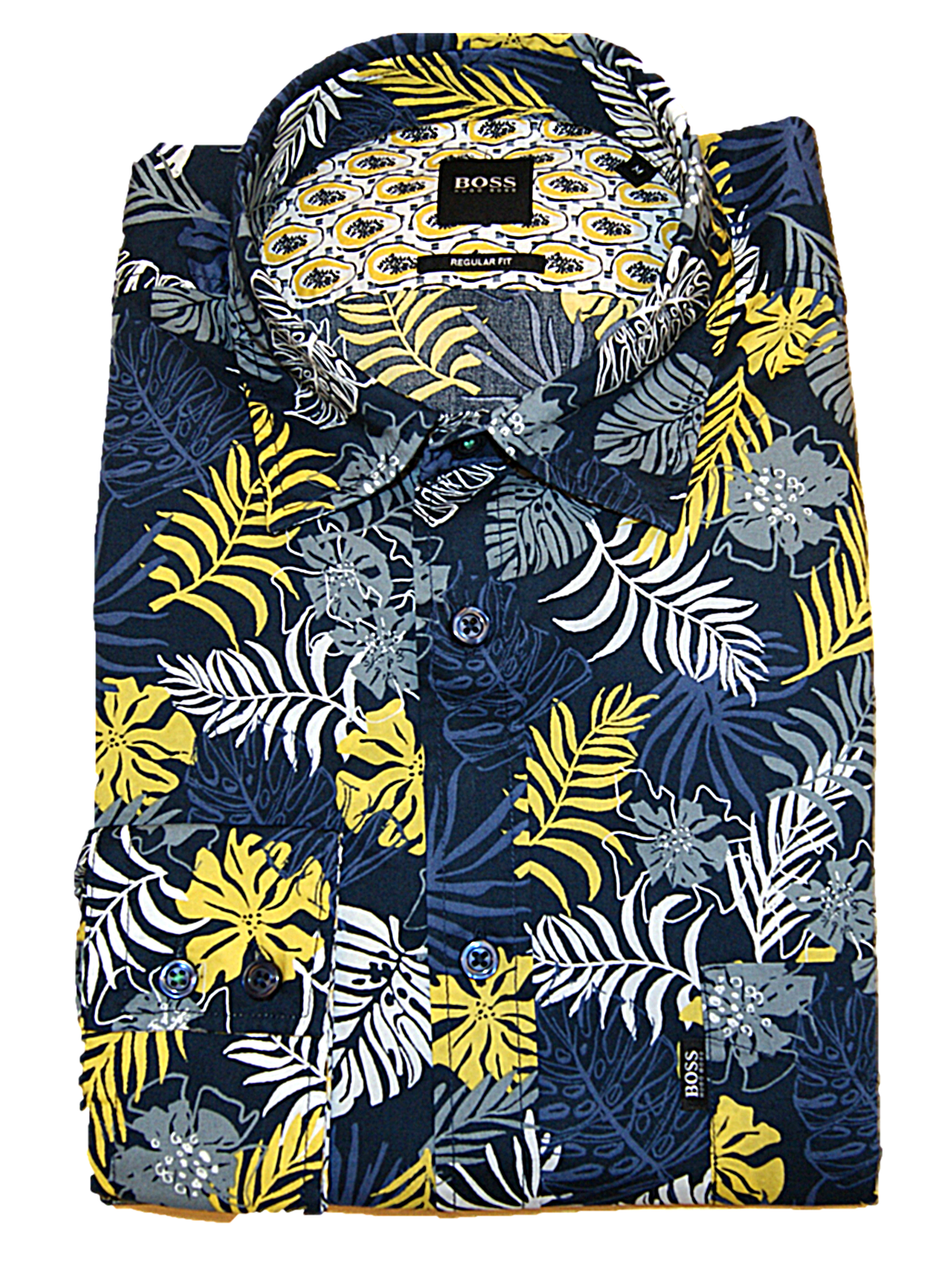 DIESES HEMD VON BOSS MIT DEM NAMEN RELEGANT_2 .MODERNES REGULAR FIT HEMD MIT MODISCHEM ALL OVER BLUMEN DRUCK MUSTER UND BRUSTTASCHE.