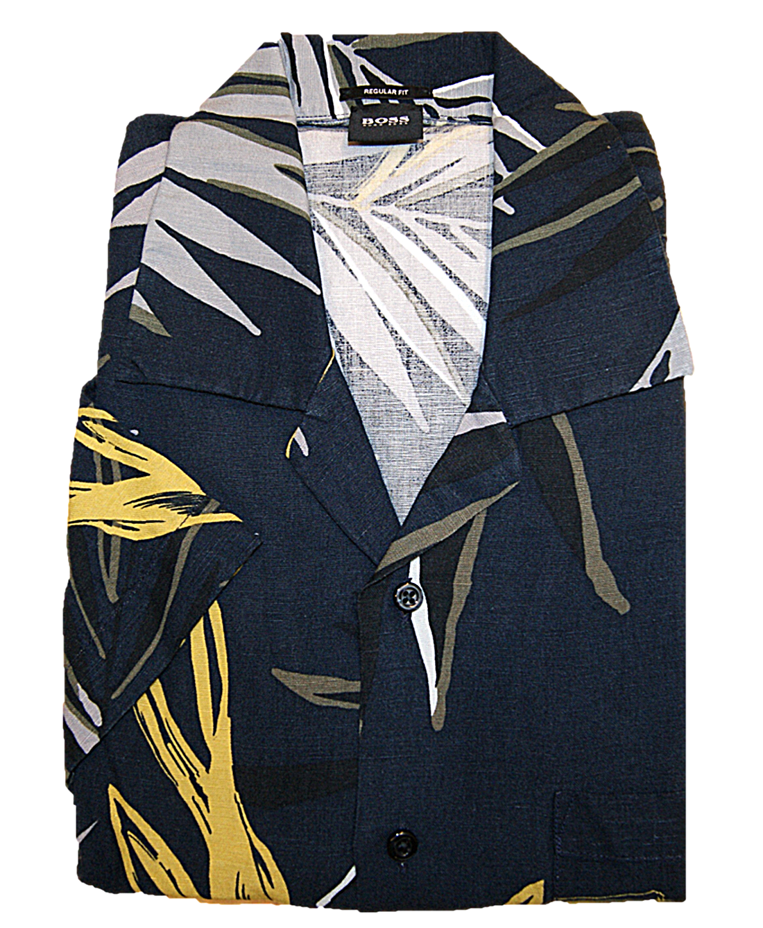 BOSS Regular-Fit Hemd RHYTHM aus Baumwolle mit Blätter-Print dunkelblau 404 S