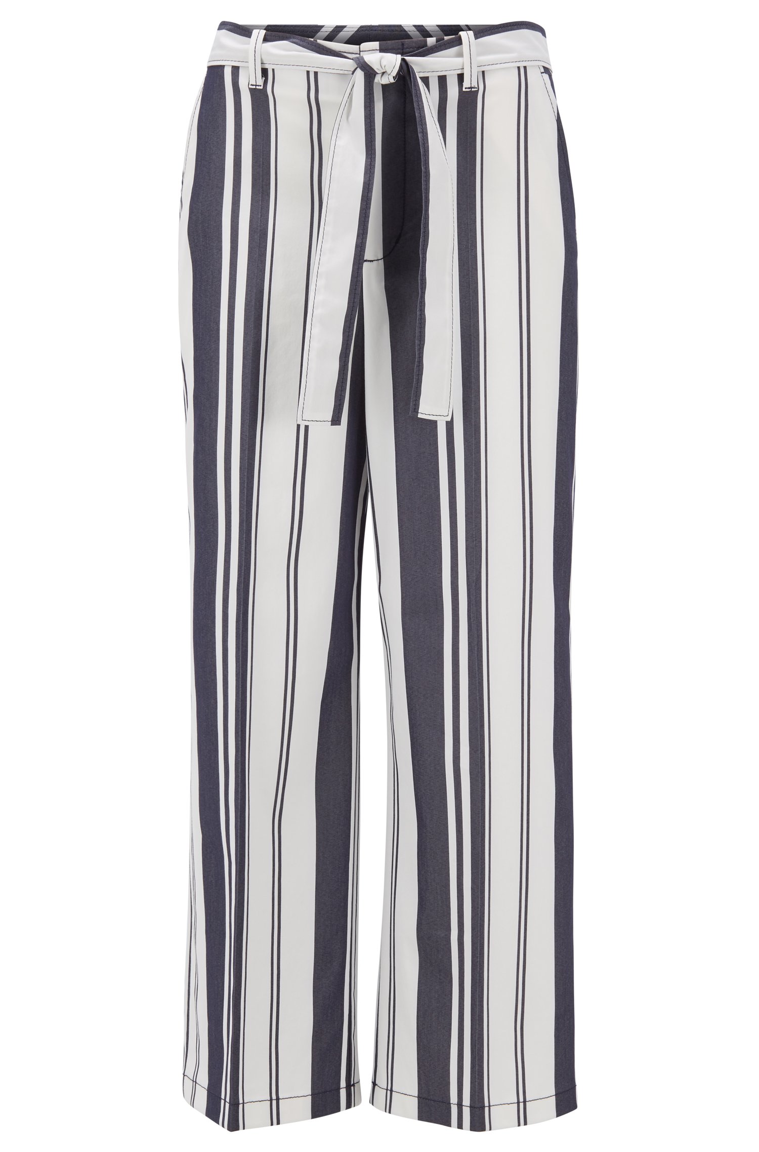 DIESE HOSE VON HUGO BOSS MIT DEM NAMEN SELENORE .REGULAR FIT HOSE MIT WEITEM BEINVERLAUF IN EINER CROPPED LÄNGE MIT UNREGEKMÄSSIGEN STRIEFEN UND BINDEGÜRTEL .