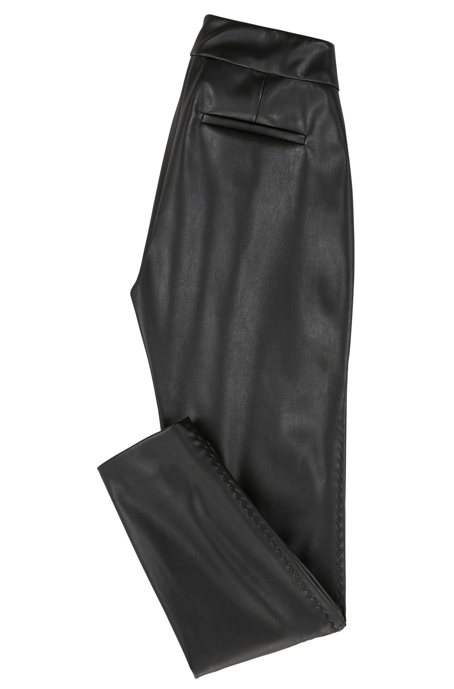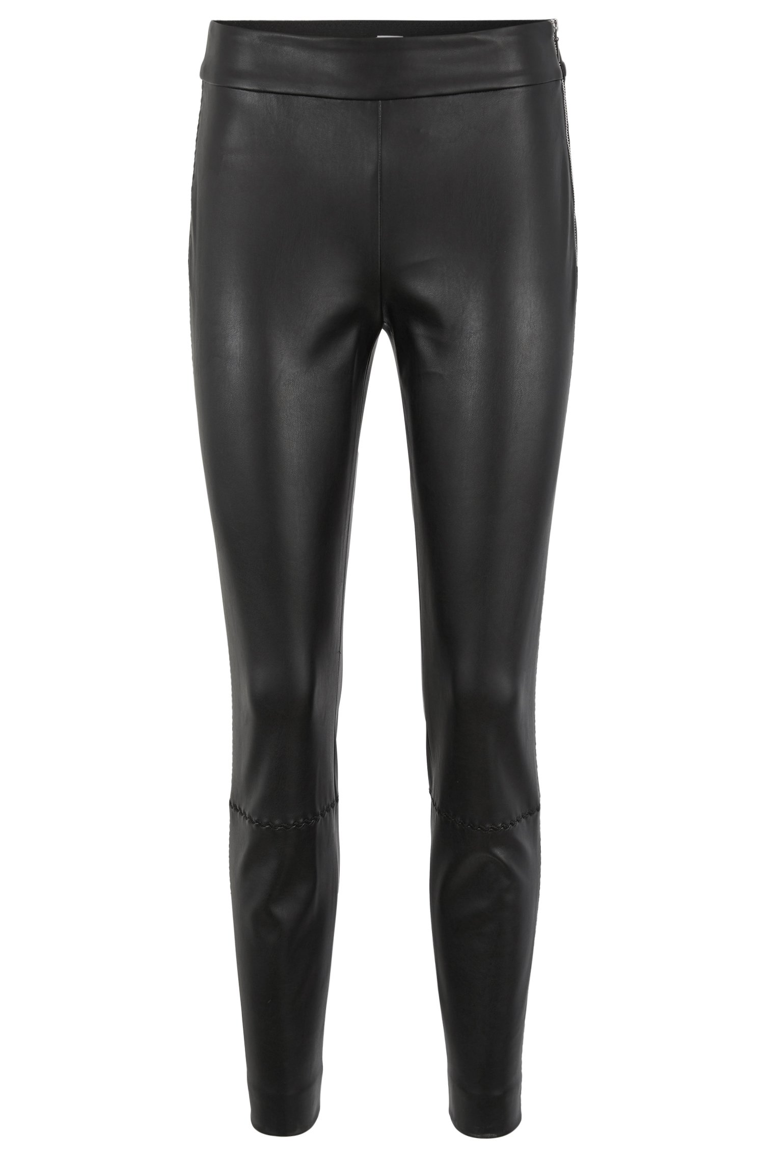 DIESE HOSE VON BOSS MIT DEM NAMEN SAWAISTY . HOCHMODISCHE HAUTENGE ELASTISCHE KUNSTLEDER HOSE MIT SICHTBAREM SEITLICHEN REISSVERSCHLUSS UND BIKER ABNÄHTEN UNTER DEN KNIEN UND SEITEN .