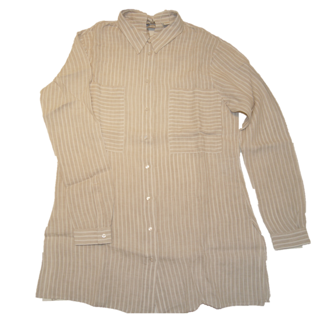 BOSS Regular Fit Leinen Streifen Bluse CATEA mit Brusttasche beige 267 42
