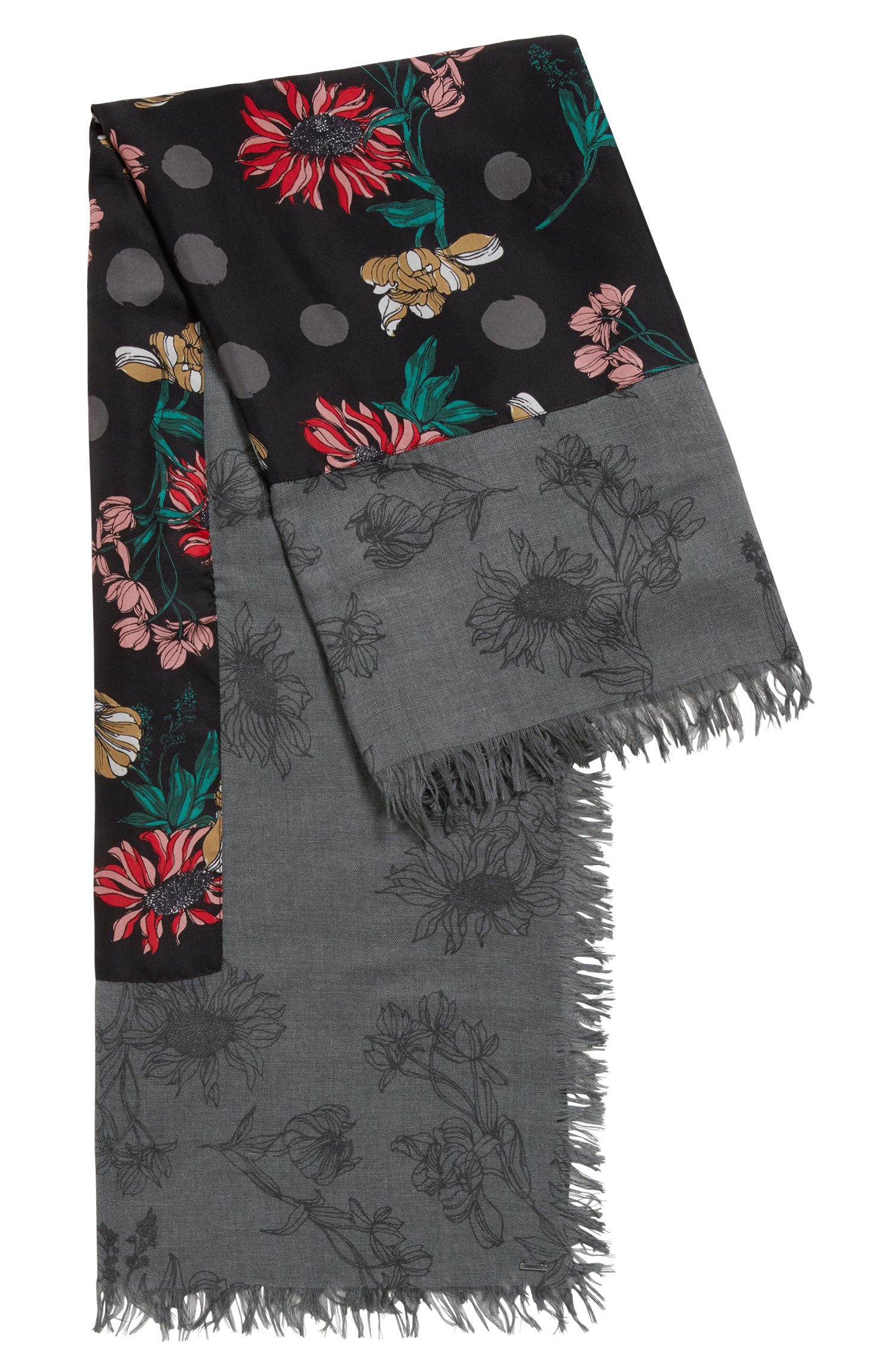 DETAILS : BLUMENMUSTER - BORDÜRE AUS SEIDE - BOSS METALL LOGO AM SAUM .