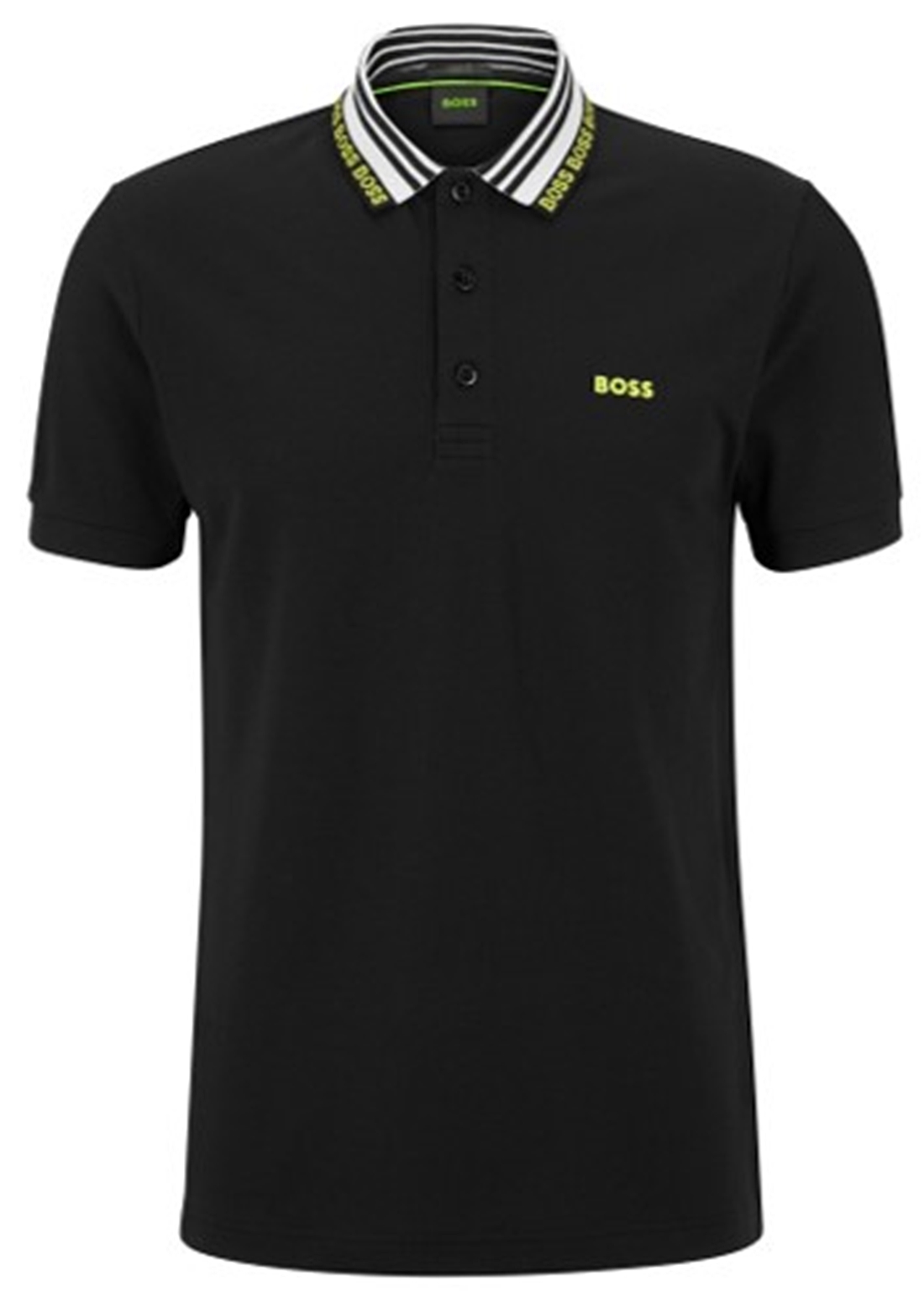Boss Slim-Fit Poloshirt Paule 2 aus Stretch-Baumwolle mit kreisförmigem Logo schwarz 001