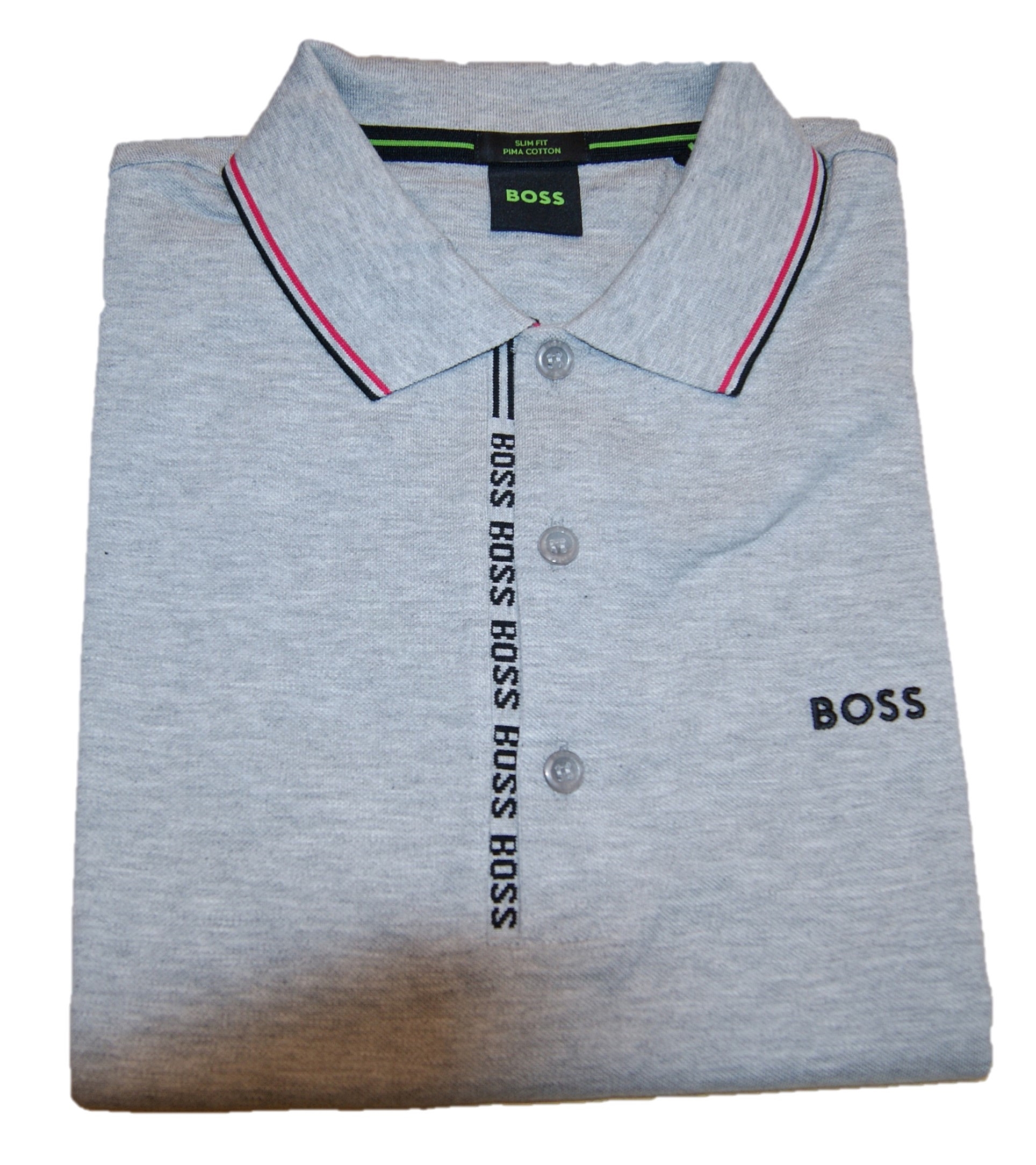 Markantes BOSS Poloshirt mit schmaler Passform. Das Herren-Polo ist mit einem BOSS Logo auf der Brust und einem vertikalen Logo an der Knopfleiste versehen. Das Oxford-Piqué aus Pima-Baumwolle sorgt für atmungsaktiven Tragekomfort. Gestreifte Einfassungen am Kragen verleihen dem Style einen sportiven Touch.